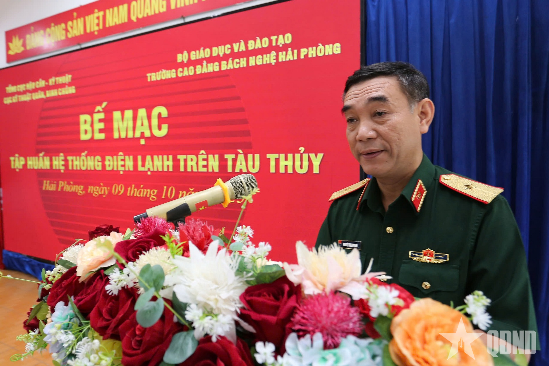 Phát biểu bế mạc tập huấn, Thiếu tướng Nguyễn Quang Anh biểu dương tinh thần học tập nghiêm túc, trách nhiệm cao của các học viên, sự chuẩn bị chu đáo, nhiệt tình giảng dạy của đội ngũ giảng viên Trường Cao đẳng Bách nghệ Hải Phòng cùng sự phối hợp hiệu quả của các cơ quan, đơn vị liên quan.