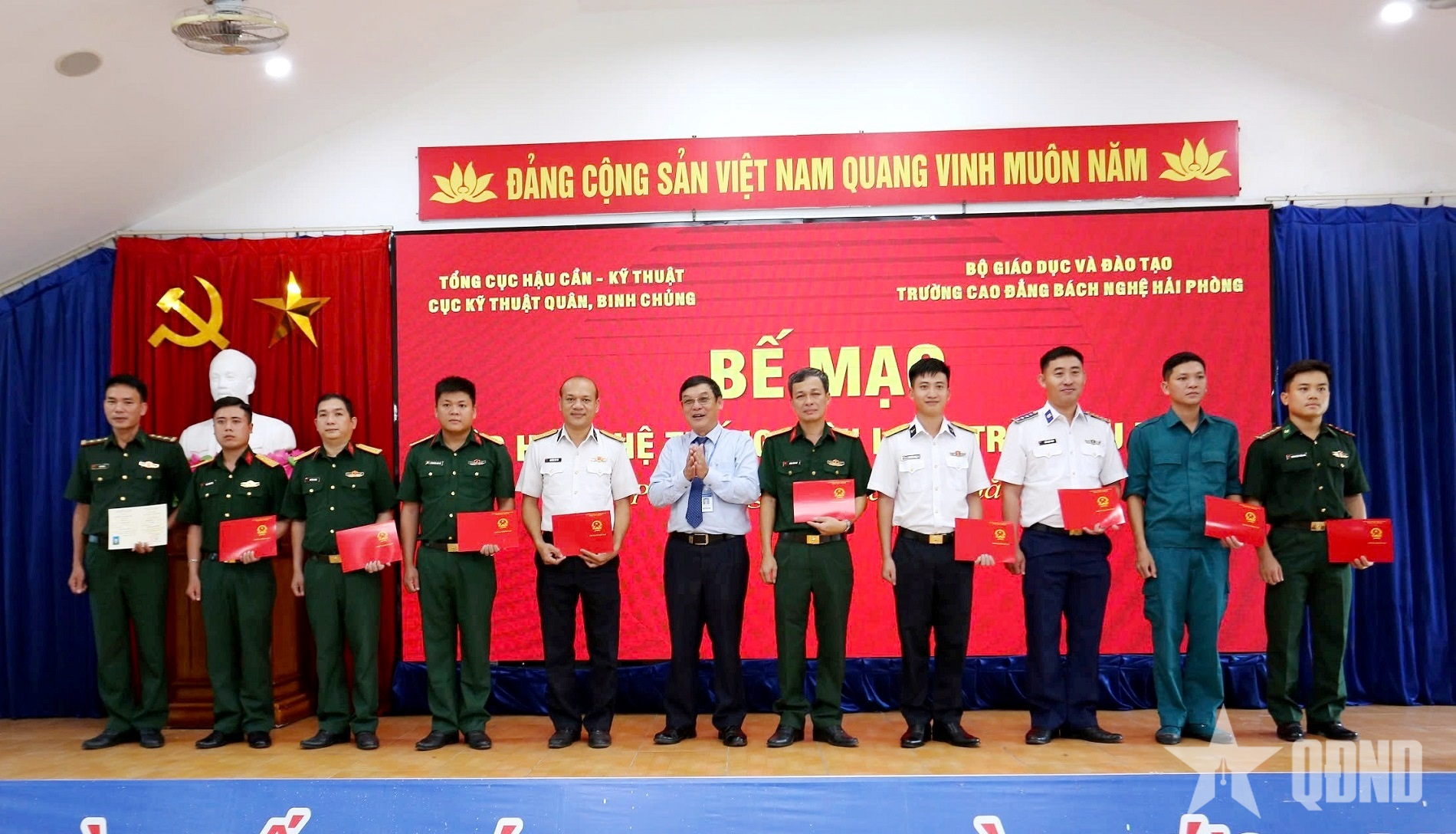 Lãnh đạo Trường Cao đẳng Bách nghệ Hải Phòng trao chứng chỉ và giấy khen cho học viên có thành tích xuất sắc trong quá trình học tập và rèn luyện. |