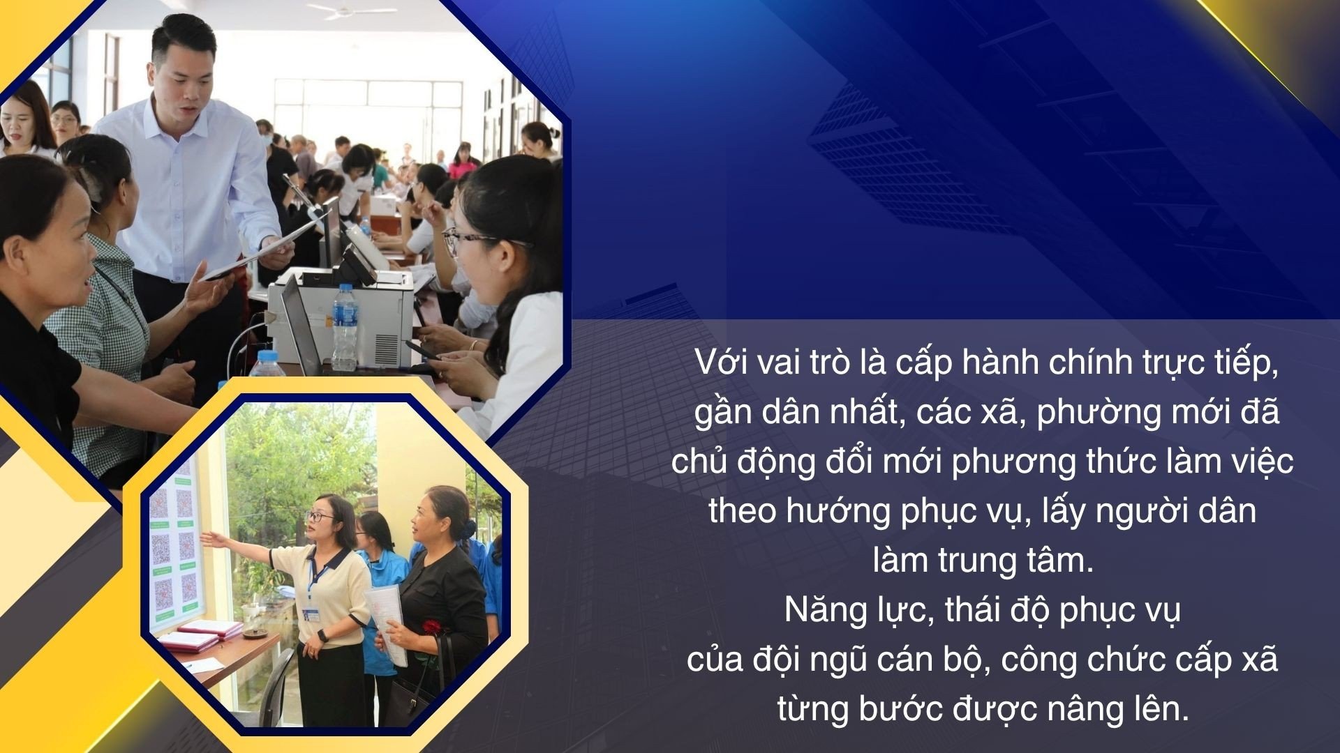 Với vai trò là cấp hành chính trực tiếp, gần dân nhất, các xã, phường mới đã chủ động đổi mới phương thức làm việc theo hướng phục vụ, lấy người dân làm trung tâm. Năng lực, thái độ phục vụ của đội ngũ cán bộ, công chức cấp xã từng bước được nâng lên.