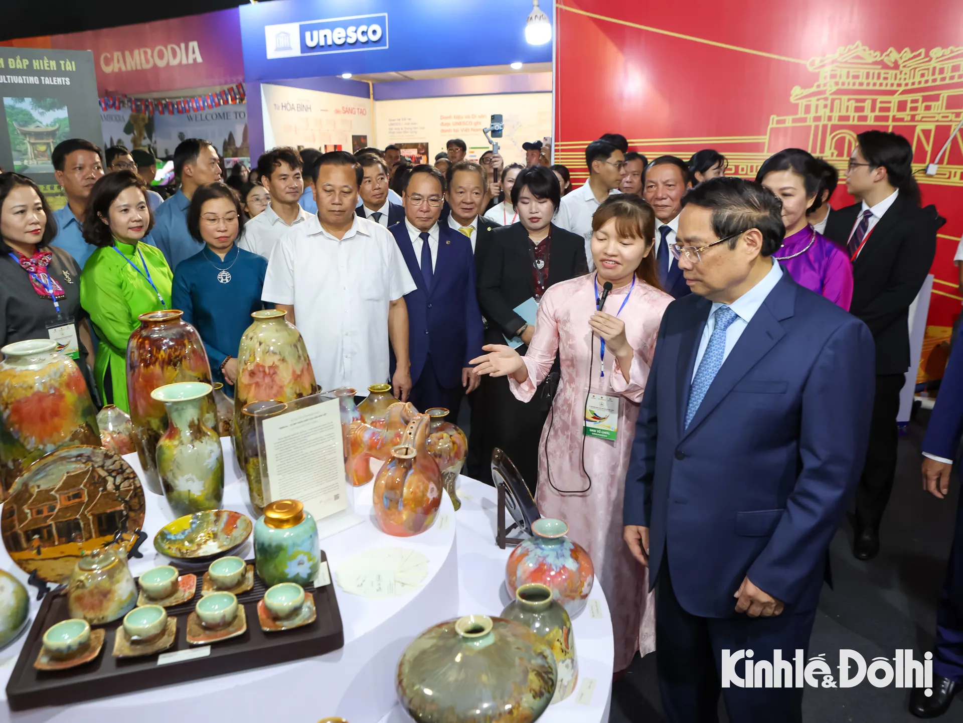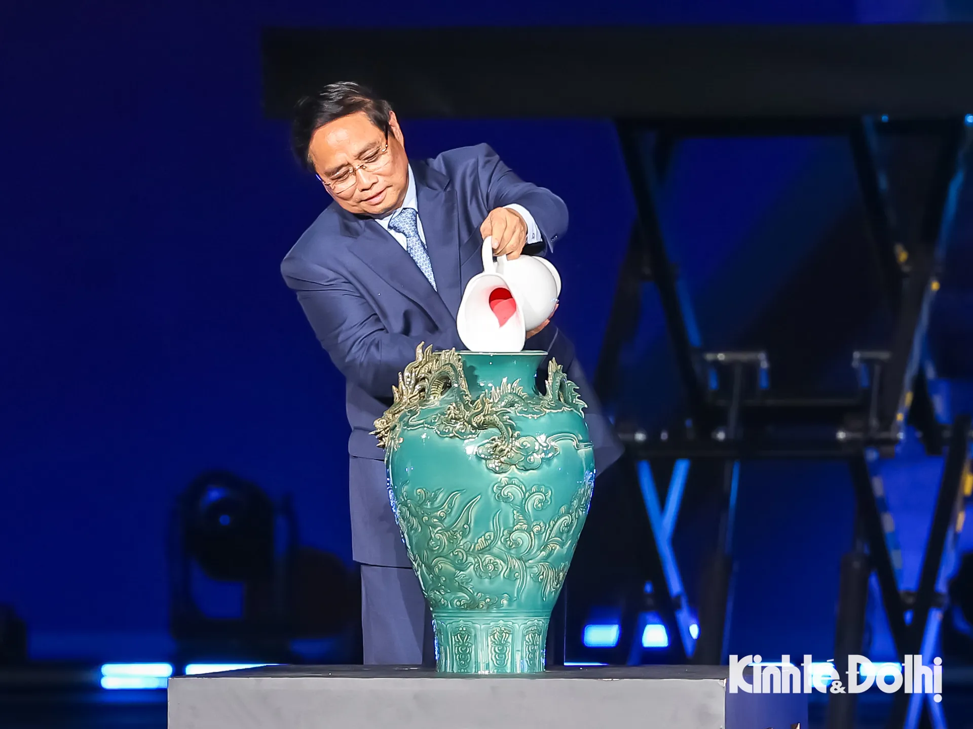 Thủ tướng Chính phủ Phạm Minh Chính thực hiện nghi thức đong đầy sắc màu, chung tay cùng tạo nên kiệt tác tinh hoa nghệ thuật thủ công.