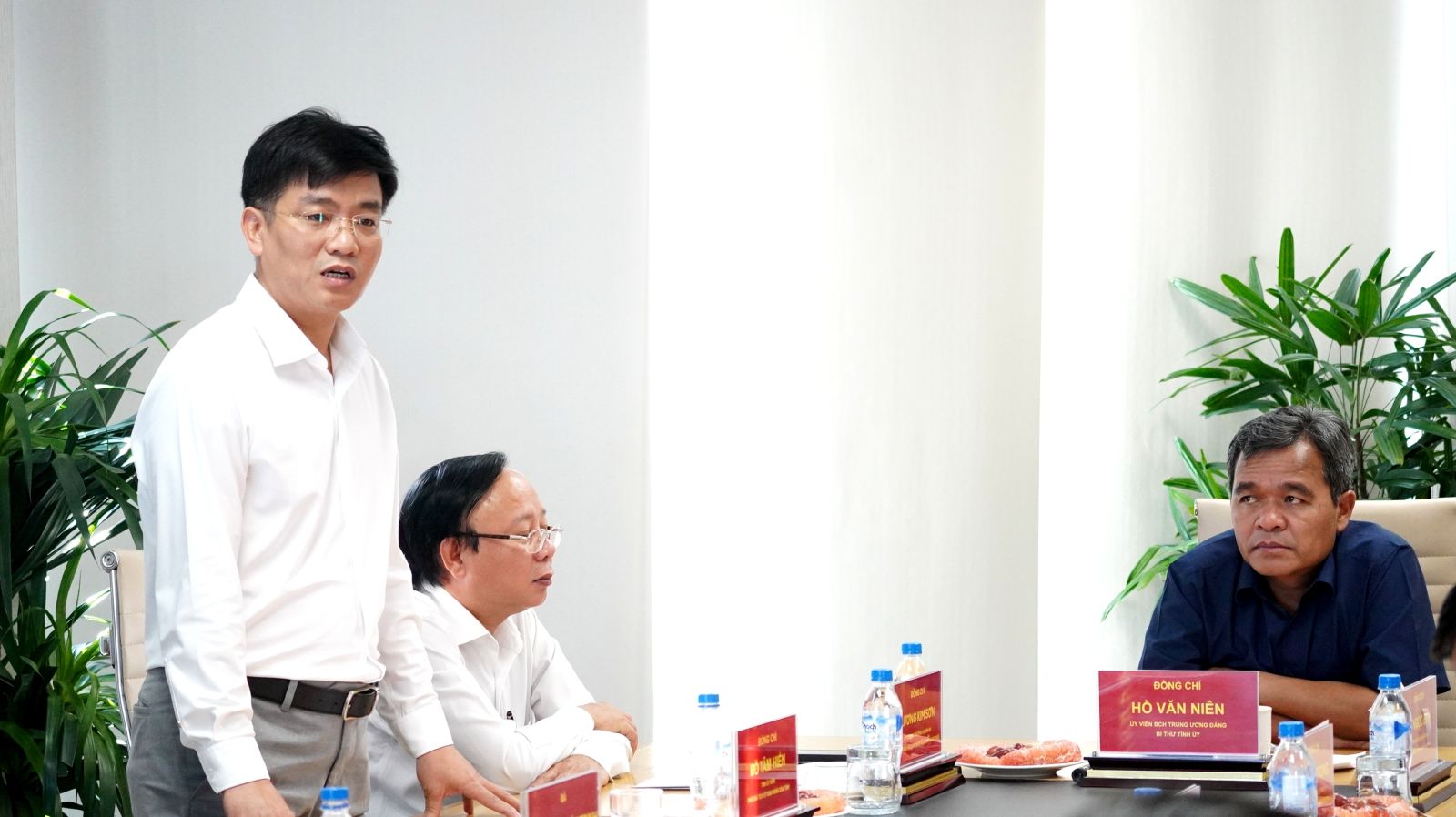 An dem Treffen nahmen der Vorsitzende der Kommission für Propaganda und Massenmobilisierung des Parteikomitees der Provinz, Ngo Van Trong, der Vorsitzende der Kommission für innere Angelegenheiten des Parteikomitees der Provinz, Truong Thi Linh, der Vorsitzende des Verwaltungsrats der Wirtschaftszone Dung Quat und der Industrieparks Quang Ngai, Luong Kim Son, sowie der stellvertretende Vorsitzende des Volkskomitees der Provinz, Do Tam Hien, teil.