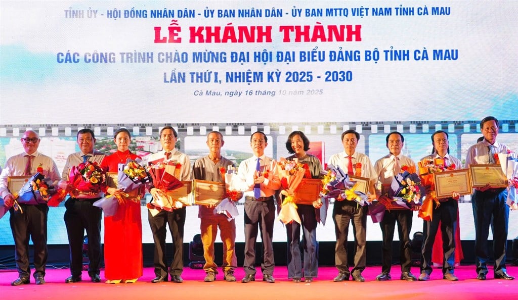 Die anlässlich des 1. Parteikongresses der Provinz (Legislaturperiode 2025–2030) eingeweihten Arbeiten umfassen: Phan-Ngoc-Hien-Platz; Brücke über den Fluss Ganh Hao; Denkmal der Zugsammlung im Norden (Song Doc); Denkmal des Sieges von Dam Doi – Cai Nuoc – Cha La; Geschichtsbuch des Parteikomitees der Provinz Cà Mau; Jahrbuch der heldenhaften vietnamesischen Mütter der Provinz Cà Mau; Sportkomplex der Provinz Cà Mau; Modernisierung des Ostseedeichs und des Durchlasssystems durch den Deich; Provinzpolizeigebäude; Bac Lieu Prince Hotel; Hightech-Projekt zur superintensiven Garnelenzucht.