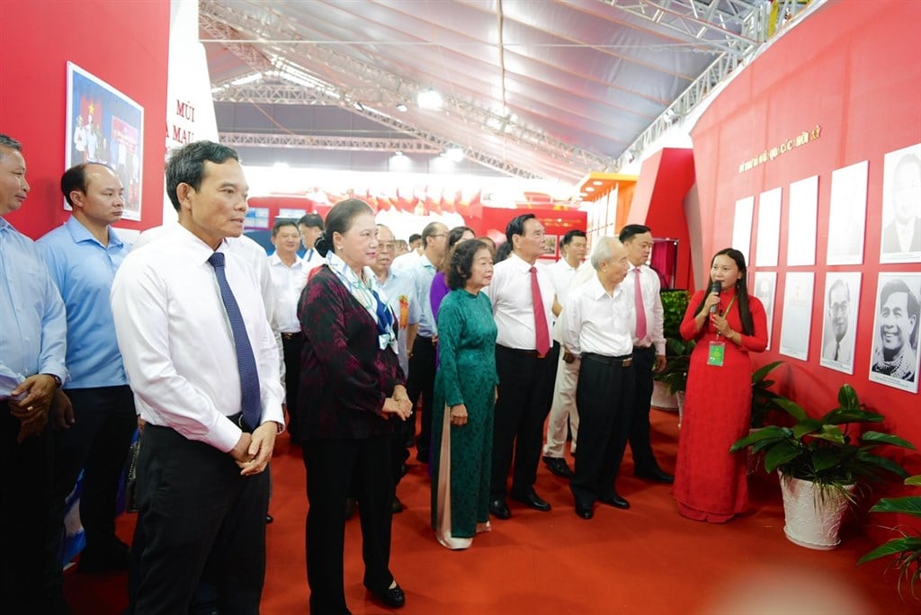 Führer und ehemalige Führer der Partei, des Staates, der Vietnamesischen Vaterländischen Front und Provinzführer besuchten den Ausstellungsraum.