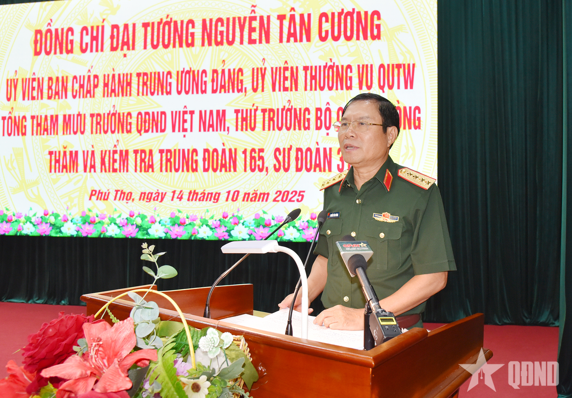 Nachdem er sich einen direkten Überblick über die Ausbildung, die Kampfbereitschaft und den Einheitenaufbau verschafft und den Bericht des Einheitskommandanten angehört hatte, lobte General Nguyen Tan Cuong die hervorragenden Ergebnisse, die das Regiment 165 in der Vergangenheit erzielt hat. Insbesondere das Parteikomitee und der Regimentskommandeur haben die Beschlüsse, Anweisungen und Befehle der Vorgesetzten gründlich verstanden, sie in allen Arbeitsaspekten umfassend umgesetzt und die zugewiesenen Aufgaben erfolgreich abgeschlossen.