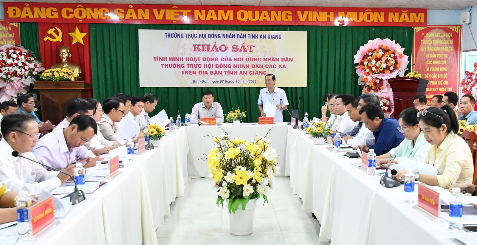 Das von Herrn Giang Van Phuc, stellvertretender Vorsitzender des Volksrats der Provinz An Giang, geleitete Untersuchungsteam arbeitete mit den Volksräten von neun Gemeinden, darunter Hon Dat, My Thuan, Son Kien, Binh Son, Binh Giang, Hoa Dien, Kien Luong, Giang Thanh und Vinh Dieu, an den Aktivitäten der Volksräte und der ständigen Ausschüsse der Volksräte der Gemeinden vom 1. Juli 2025 bis heute.
