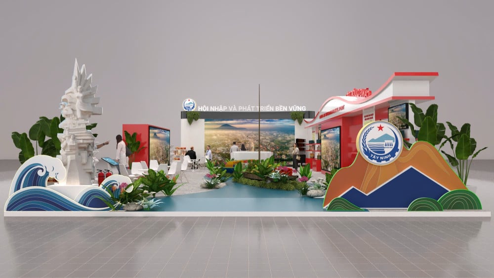 Das Highlight ist der Ausstellungsbereich mit dem Thema „Tay Ninh – Integration und nachhaltige Entwicklung“, der nach dem Lauf des Flusses Vam Co gestaltet ist und die Verbreitung der Werte des Landes Tay Ninh symbolisiert. Der Ausstellungsraum nutzt LED-Technologie, digitale Projektion und 3D-Bilder, um das Potenzial der lokalen Industrie, des Handels, des Tourismus und der Kultur im Hinblick auf die digitale Transformation vorzustellen.