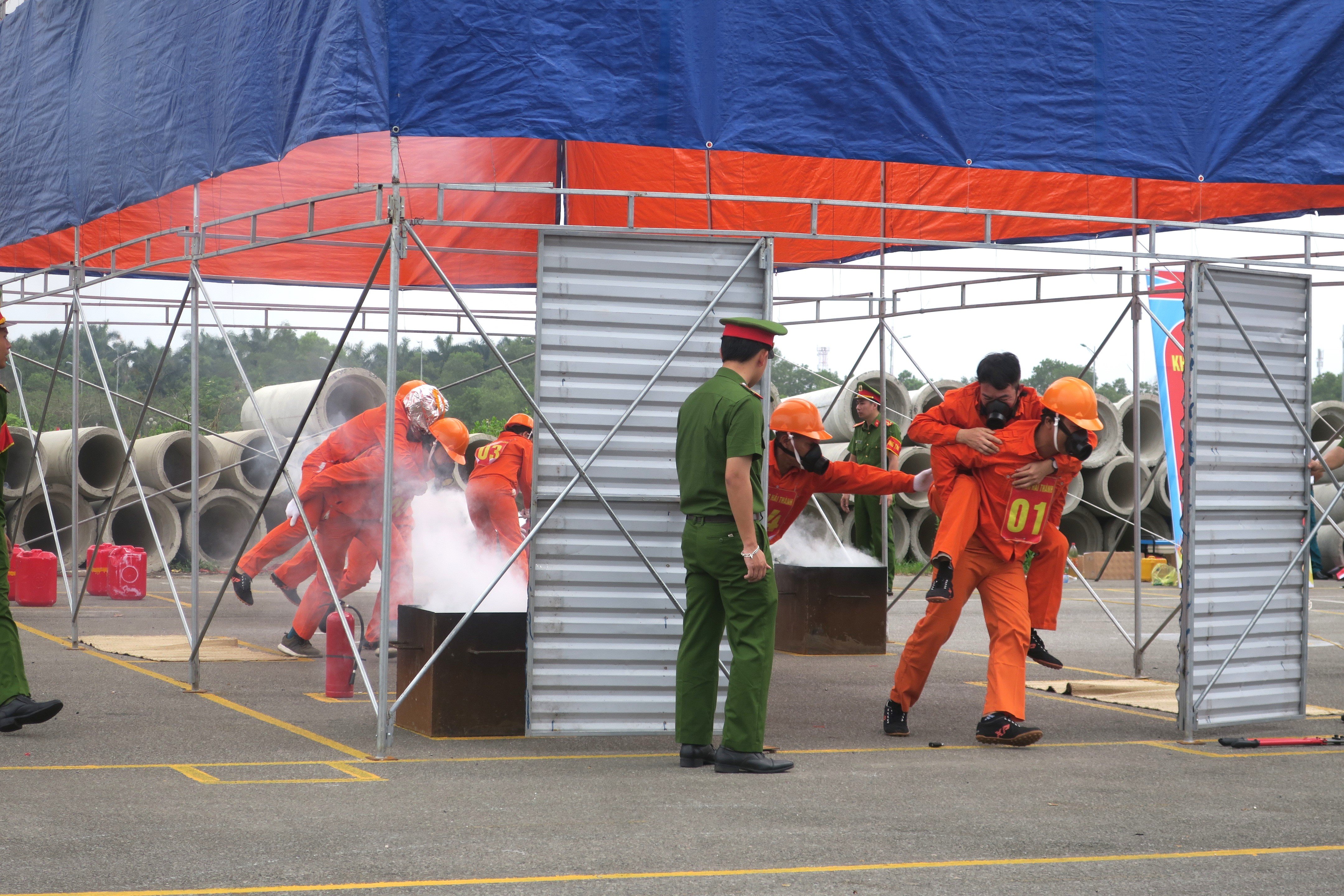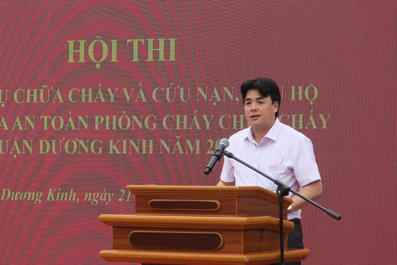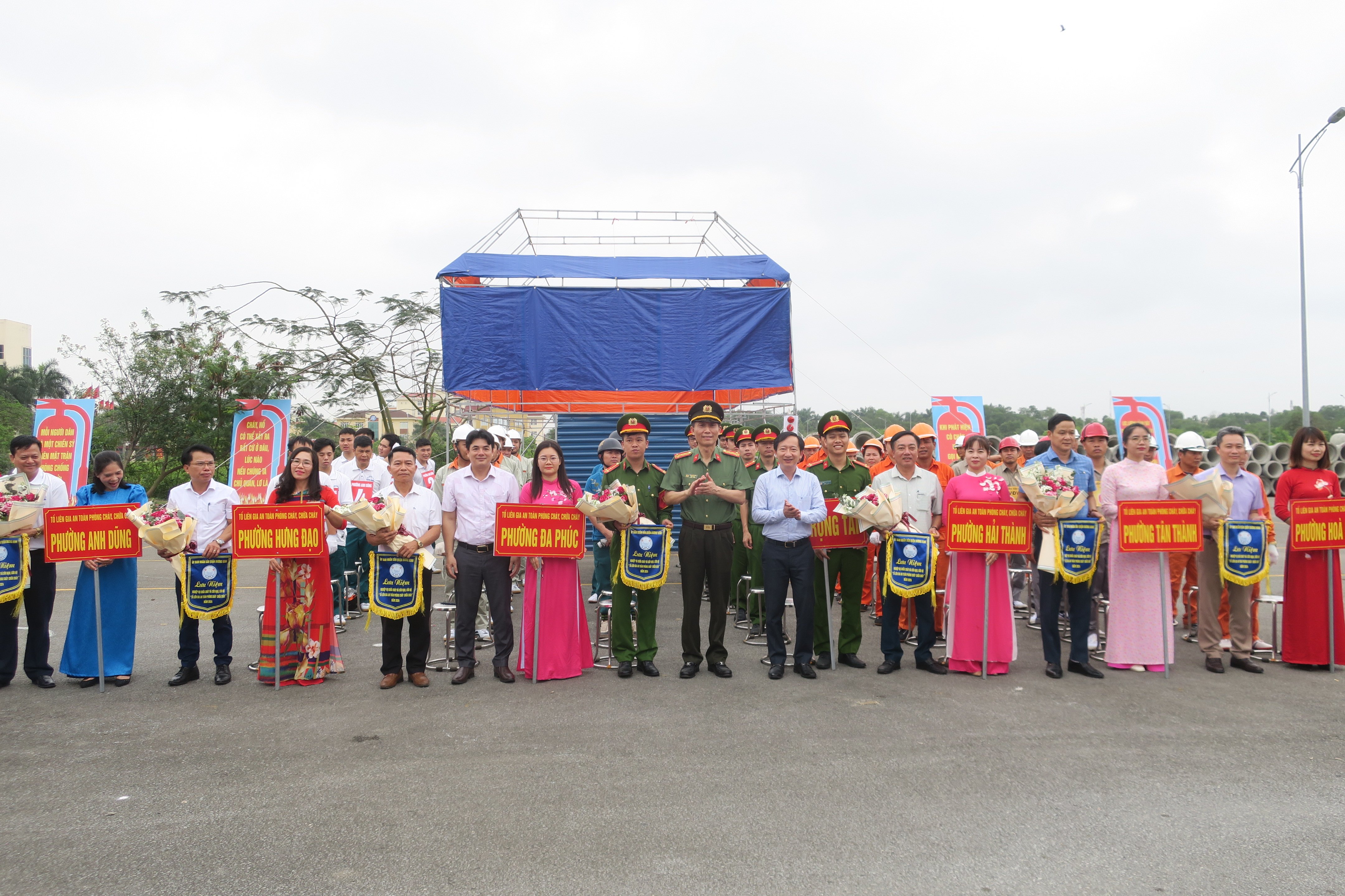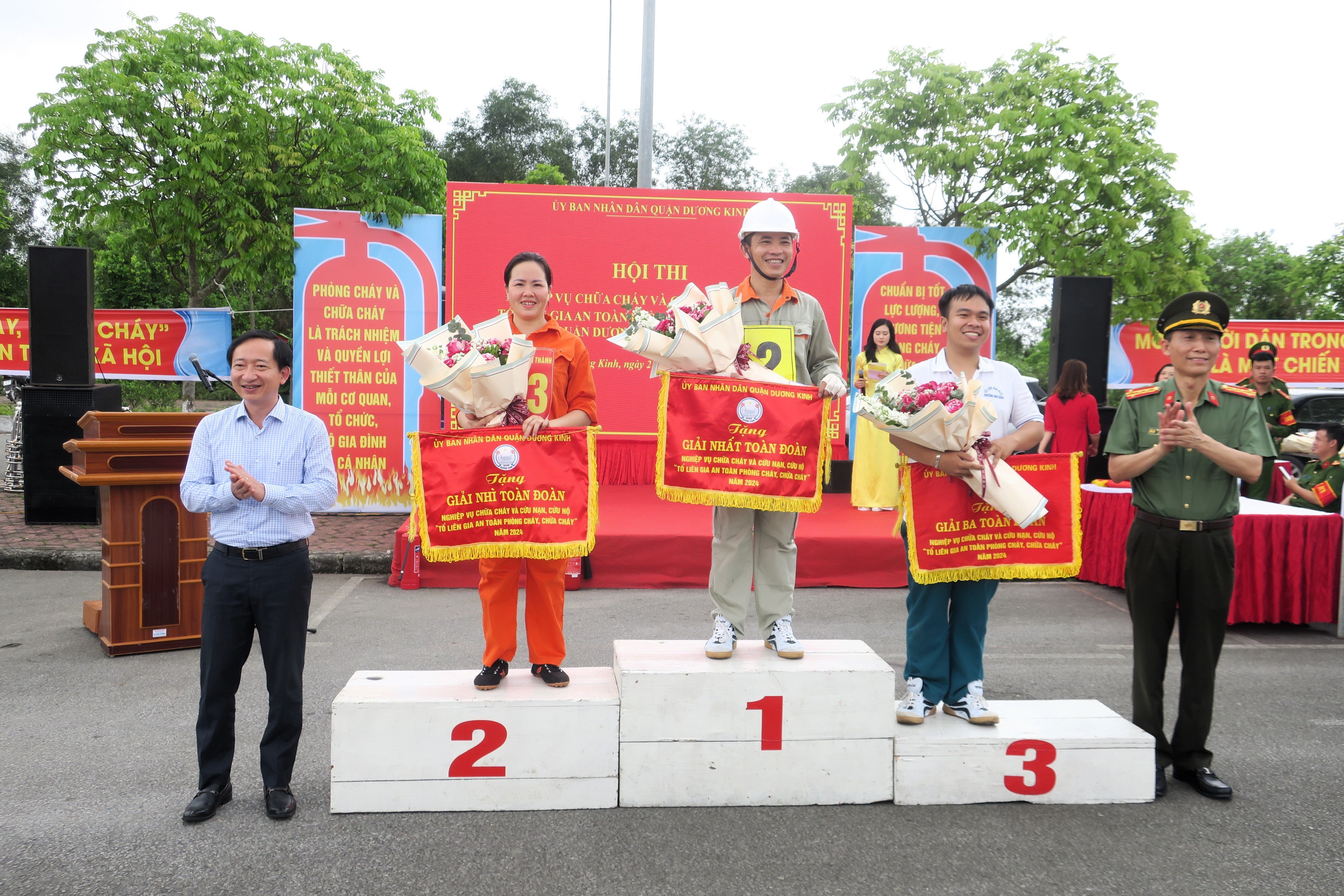 In seiner Rede bei dem Wettbewerb sagte Genosse Dang Xuan Dien, ständiger stellvertretender Vorsitzender des Volkskomitees des Bezirks Duong Kinh: „Die Festlegung von Brandschutz und Brandbekämpfung ist eine der wichtigsten Aufgaben, denn wenn ein Feuer oder eine Explosion ausbricht, sind die Folgen äußerst verheerend und verursachen großen Sachschaden und Menschenleben. In jüngster Zeit hat der Bezirk Duong Kinh seine Führung und Leitung stets verstärkt und viele konkrete Lösungen umgesetzt, um alle Bevölkerungsschichten für Brandschutz und Brandbekämpfung zu sensibilisieren. Er hat großen Wert auf Propagandaarbeit gelegt und die Bewegung aller an Brandschutz und Brandbekämpfung beteiligten Menschen stark gefördert. Er hat das Motto „4 vor Ort“ bei Brandschutz und Brandbekämpfung sowie Rettungsarbeiten umgesetzt und den Bau von Modellen wie „Sicherheitsgruppen für Brandschutz und Brandbekämpfung zwischen Familien“ und „Öffentlichen Feuerlöschpunkten“ in Wohngebieten, insbesondere in Gebieten mit angrenzenden Häusern und Unternehmen, angeordnet.