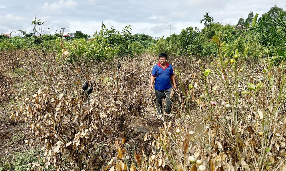 Bei Bäumen mit losen Wurzeln ist es notwendig, den Stamm zu stampfen, aufzuschütten und große Wunden mit antiseptischen Lösungen wie Kalkwasser oder kupferhaltigen Pestiziden zu behandeln. Nachdem das Wasser zurückgegangen und der Boden trocken ist, sollten Landwirte den Mutterboden (5–10 cm) um den Stamm herum leicht lockern, um die Kruste aufzubrechen, Belüftung zu schaffen, die Sauerstoffaufnahme der Wurzeln zu unterstützen und ihre Regeneration zu fördern. Gleichzeitig ist es notwendig, Pilzkrankheiten vorzubeugen, indem Kalkpulver gestreut, Fungizide und Insektizide zur Abtötung von Wollläusen und Nematoden im Bereich der Baumzerstörung eingesetzt und so die Krankheitsquelle eingedämmt wird.
