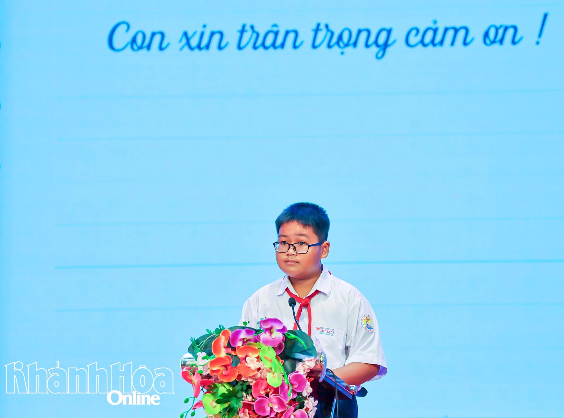 Le Nguyen Phi Hung – Schüler der 7. Klasse der Au Co Secondary School (Bezirk Nha Trang) vertrat die Waisen, um den Patinnen für ihre Hilfe zu danken. |