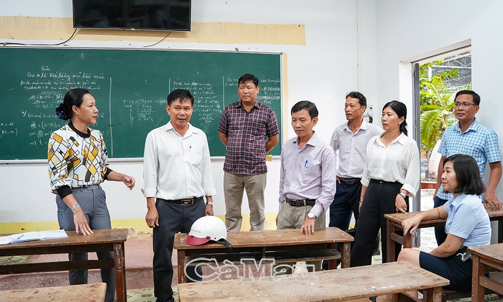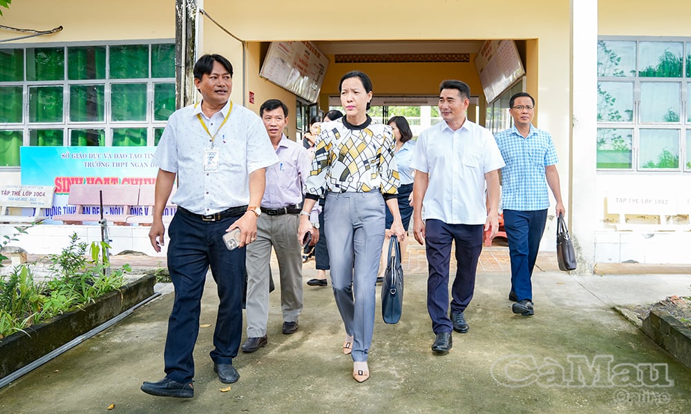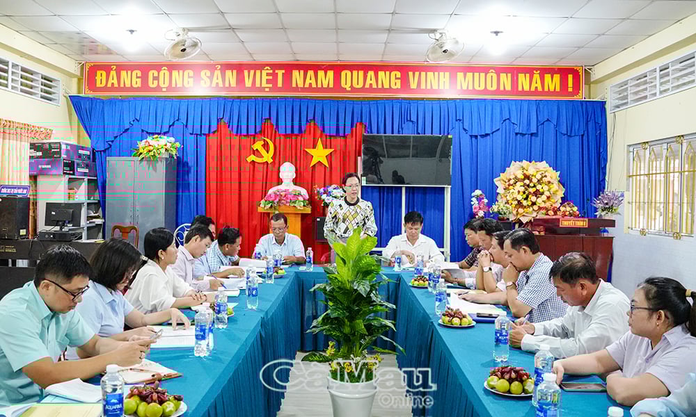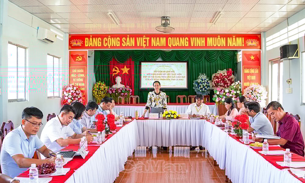 Frau Tran Thi Huynh Dao, Leiterin des Kultur- und Sozialausschusses des Volksrats der Provinz Ca Mau, sprach bei einer kurzen Arbeitssitzung mit Schulen.