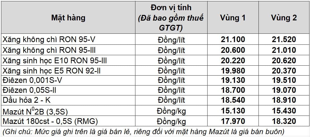 Für Gebiete weit entfernt von Häfen, Hauptlagern und Erdölproduktionsanlagen gemäß Klausel 27, Artikel 1, Dekret 95/2021/ND-CP vom 1. November 2021 der Regierung (Petrolimex bezeichnet sie als „Zone 2“); Der Generaldirektor von Petrolimex ermächtigt die Direktoren der Petrolimex-Mitgliedsunternehmen, direkt über den tatsächlichen Verkaufspreis am Geschäftsstandort zu entscheiden, der jedoch das Preisniveau der oben genannten Zone 2 nicht überschreiten darf.