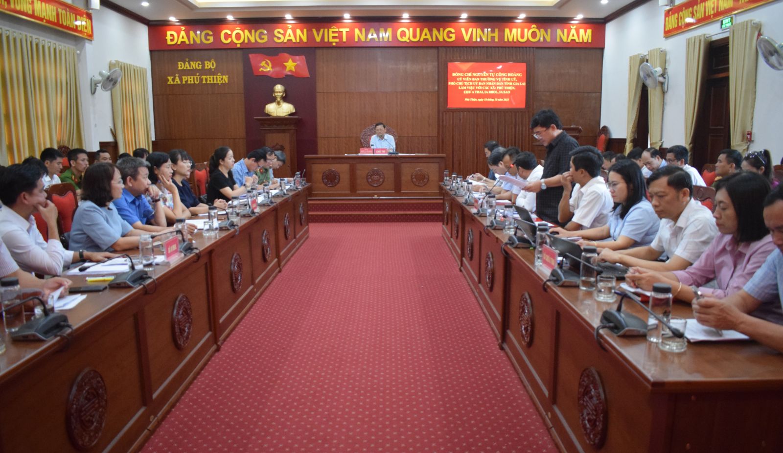 Die Führer der Gemeinde Phu Thien berichten auf dem Treffen