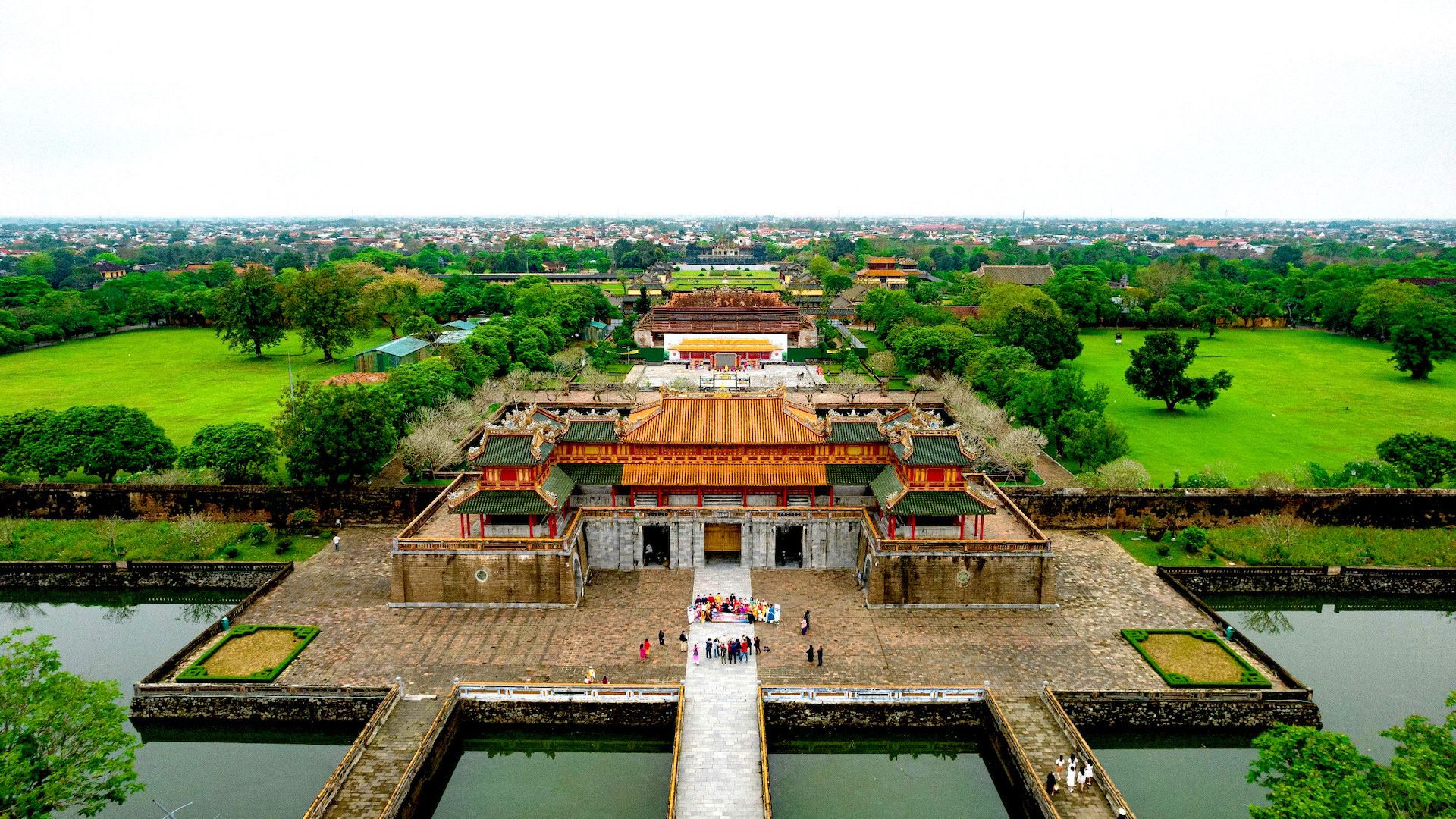 Von oben betrachtet erscheint die Kaiserstadt Hue strahlend und leuchtend inmitten der historischen Stadt. Foto: LE HOANG