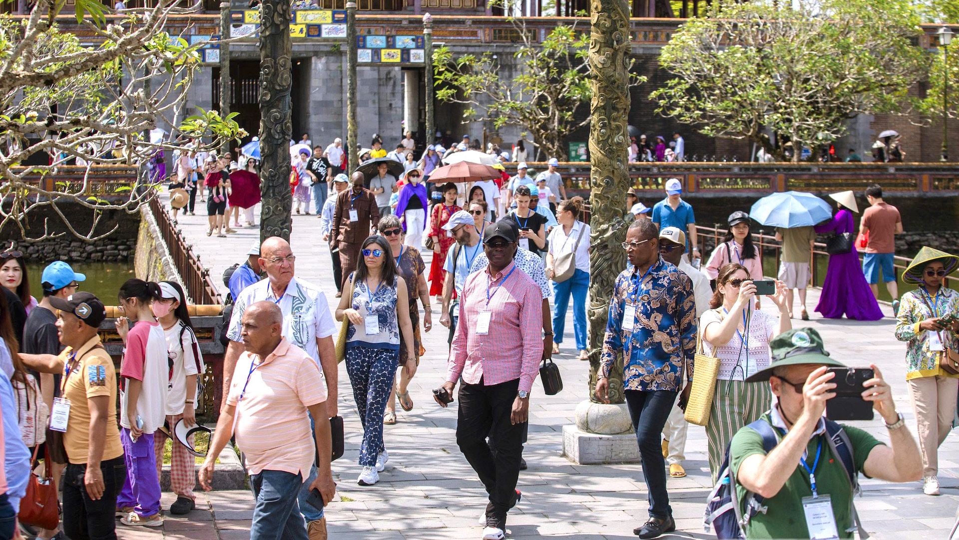 Internationale Touristen besuchen die Kaiserstadt Hue, ein typisches Ziel auf der Reise zum Weltkulturerbe Vietnams. Foto: Hue Monuments Conservation Center