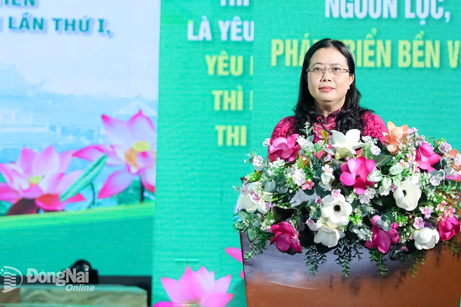 Le Thi Ngoc Loan, Mitglied des Provinzparteikomitees und Direktor des Ministeriums für Kultur, Sport und Tourismus der Provinz Dong Nai, hielt auf der Konferenz eine Rede. Foto: Huy Anh |