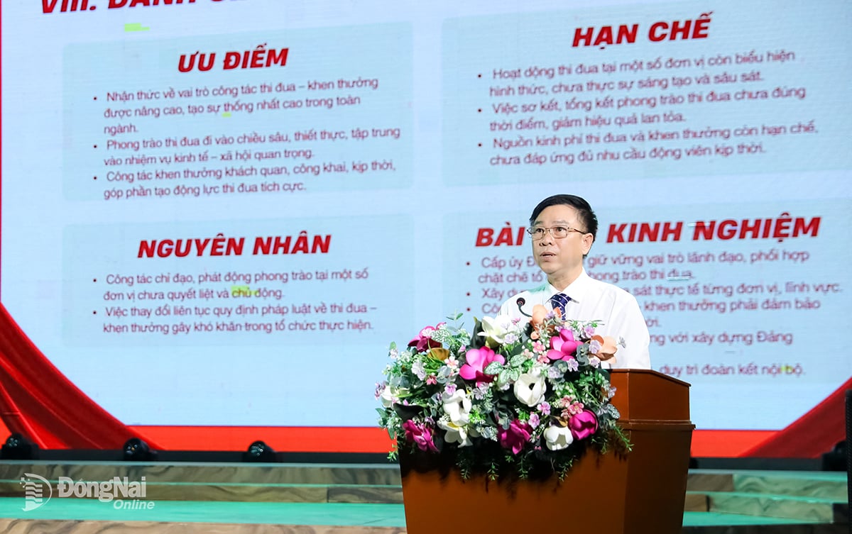 Der stellvertretende Direktor des Ministeriums für Kultur, Sport und Tourismus der Provinz Dong Nai, Nguyen Khac Vinh, präsentierte einen zusammenfassenden Bericht über die patriotische Nachahmungsbewegung für den Zeitraum 2020-2025. Foto: Huy Anh |