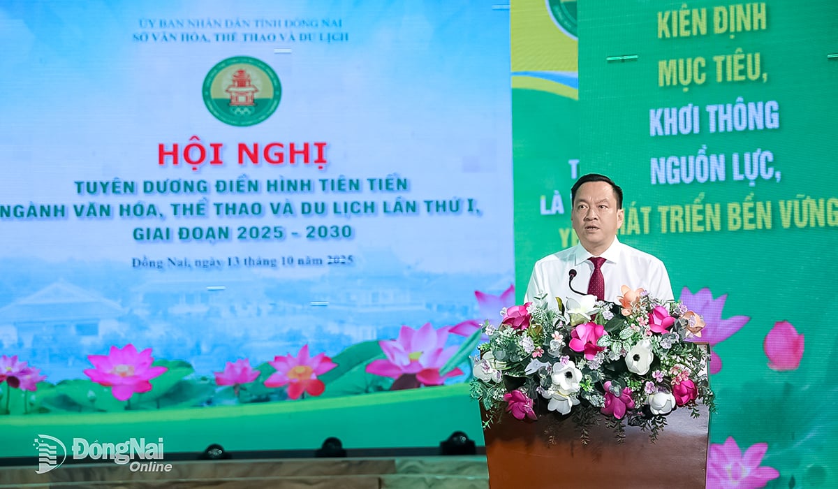 Der stellvertretende Direktor des Ministeriums für Kultur, Sport und Tourismus der Provinz Dong Nai, Vu Xuan Truong, startete die Nachahmungsbewegung für den Zeitraum 2025-2030 im Kultur-, Sport- und Tourismussektor. Foto: Huy Anh |