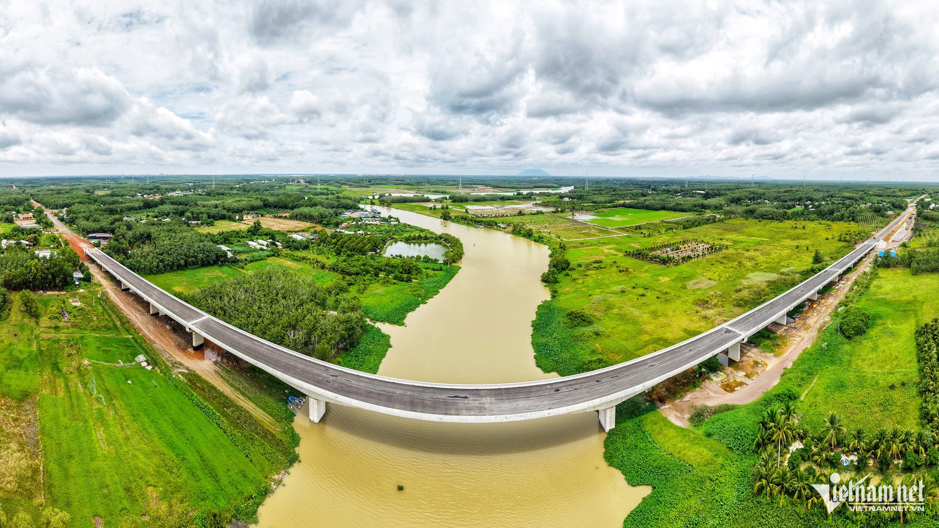 Dies ist die größte Brücke des Pakets, in die rund 180 Milliarden VND investiert wurden. Sie umfasst 12 Pfeiler mit einer maximalen Durchfahrtshöhe von 7 m, sodass auch große Schiffe problemlos durchfahren können.
