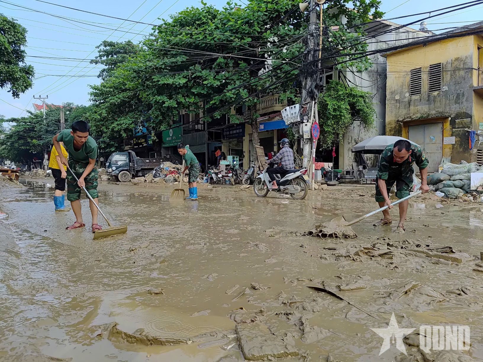 Seit fast einer Woche steht die Truppe, die der Ortschaft hilft, die Folgen der Überschwemmung des Regiments 209 zu überwinden, um 4:15 Uhr auf, frühstückt, begibt sich zum Sammelpunkt am Vo Nguyen Giap-Platz im Bezirk Phan Dinh Phung und verteilt sich dann in alle Richtungen, um die Aufgabe gemäß Vertrag auszuführen. Die größte Konzentration befindet sich noch immer in der Ben Oanh-Straße.