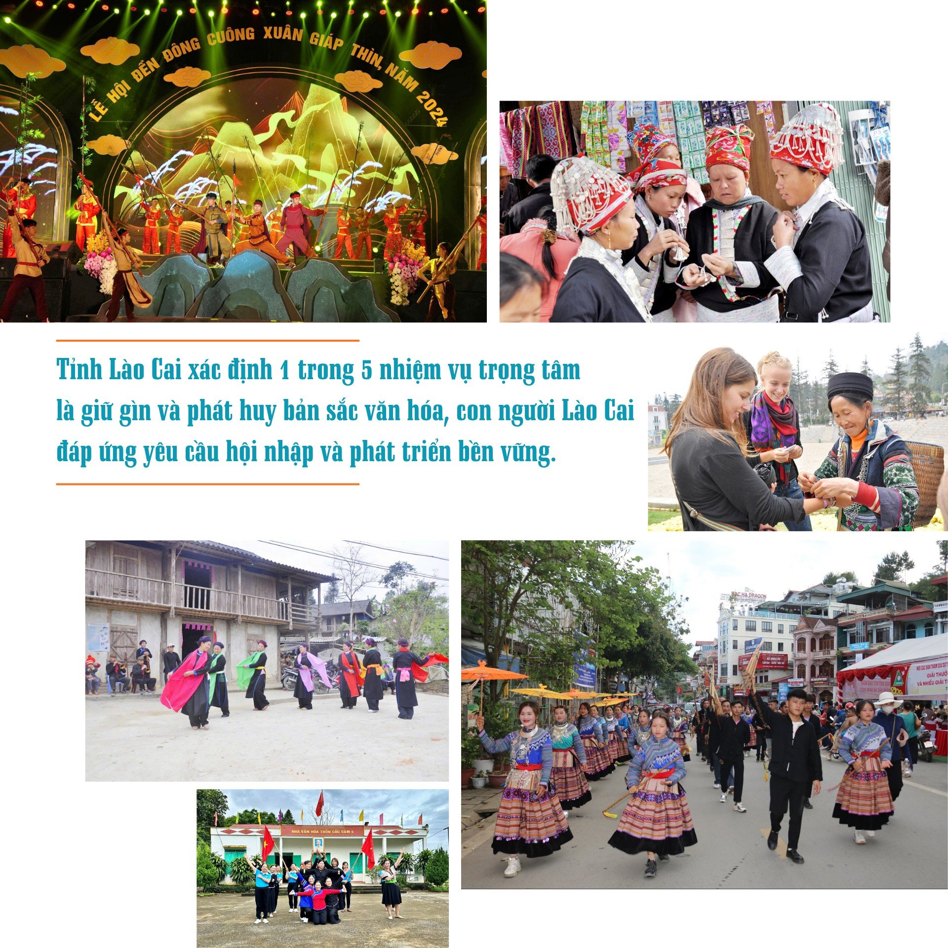 Die Provinz hat außerdem eine ihrer fünf Hauptaufgaben darin identifiziert, die kulturelle Identität und die Bevölkerung von Lao Cai zu bewahren und zu fördern, um den Anforderungen der Integration und nachhaltigen Entwicklung gerecht zu werden und den Geist des Patriotismus, der Eigenständigkeit, des Selbstvertrauens, der Unabhängigkeit, des Nationalstolzes und des Wunsches nach Aufstieg zu stärken. Das Wissen der Bevölkerung zu verbessern und sich um den Aufbau und die Entwicklung der Kultur und der Bevölkerung von Lao Cai mit den grundlegenden Eigenschaften des vietnamesischen Volkes zu kümmern, wobei die Eigenschaften des Grenzlandes des Vaterlandes „Solidarität – Patriotismus – Disziplin – Zivilisation – Gastfreundschaft“ zum Ausdruck kommen.