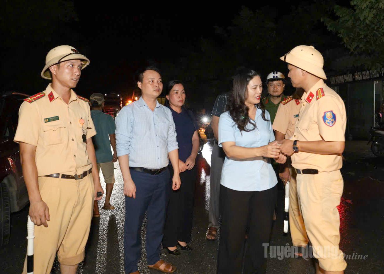 Thăm, động viên các lực lượng trực tiếp cứu hộ, điều tiết giao thông, đồng chí Phó Chủ tịch UBND tỉnh Vương Ngọc Hà chia sẻ những khó khăn do thiên tai với nhân dân; chia sẻ sự vất vả của các lực lượng đã thường xuyên thay nhau túc trực điều tiết, phân luồng giao thông. Đồng chí Phó Chủ tịch UBND tỉnh mong muốn các lực lượng tiếp tục nỗ lực khắc phục khó khăn, chia tổ trực để điều tiết, hỗ trợ kịp thời, bảo đảm an toàn tuyệt đối về người và tài sản cho người dân.