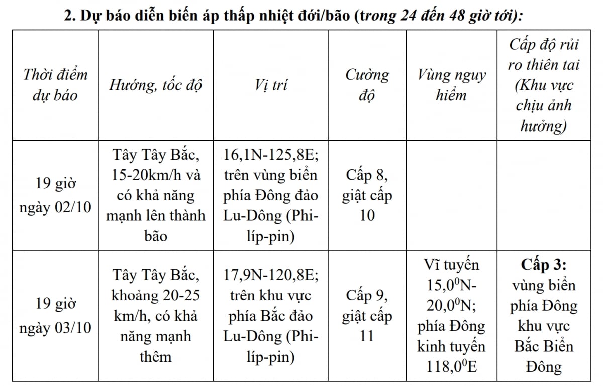 Warning: During October 4-6, the North East Sea area (including Hoang Sa special zone) is likely to be affected by strong winds of level 11-12, gusting to level 15.