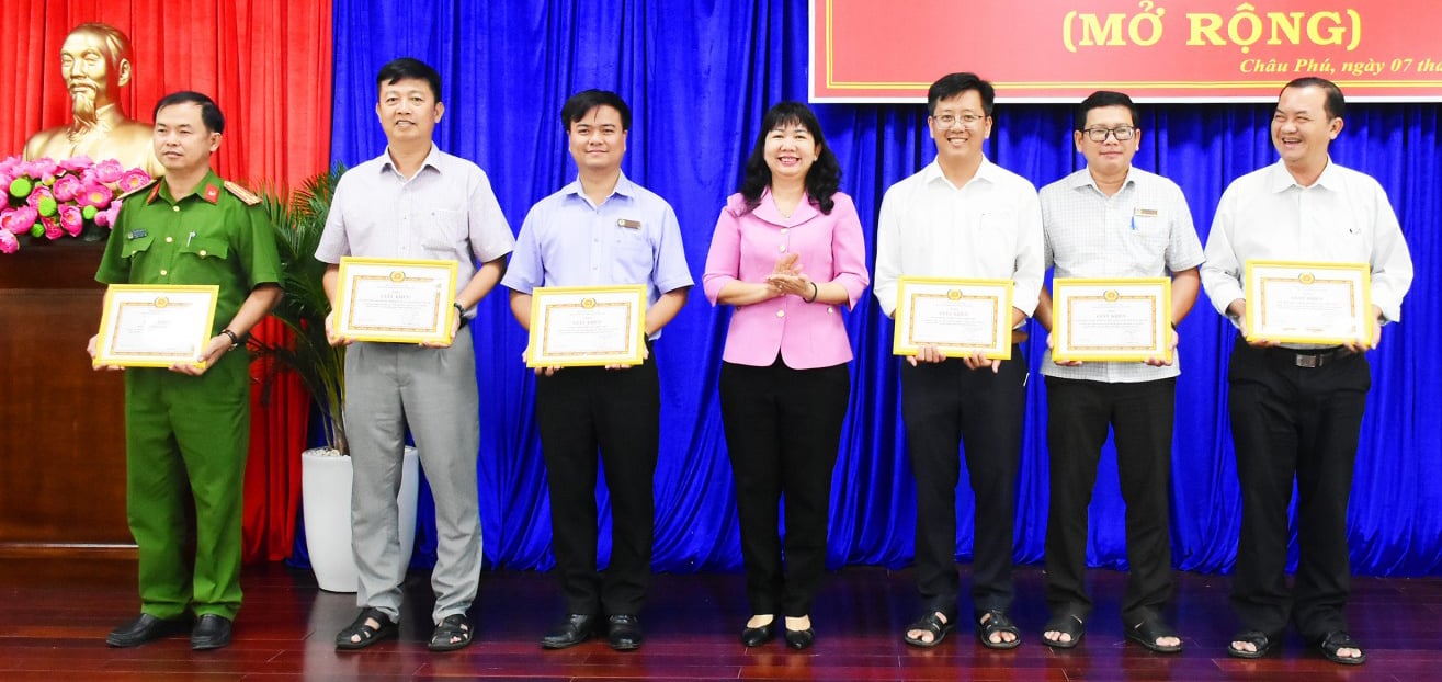 On this occasion, the Standing Committee of Chau Phu Commune Party Committee commended collectives and individuals with many achievements in implementing Resolution 18-NQ/TW of the 12th Party Central Committee.
