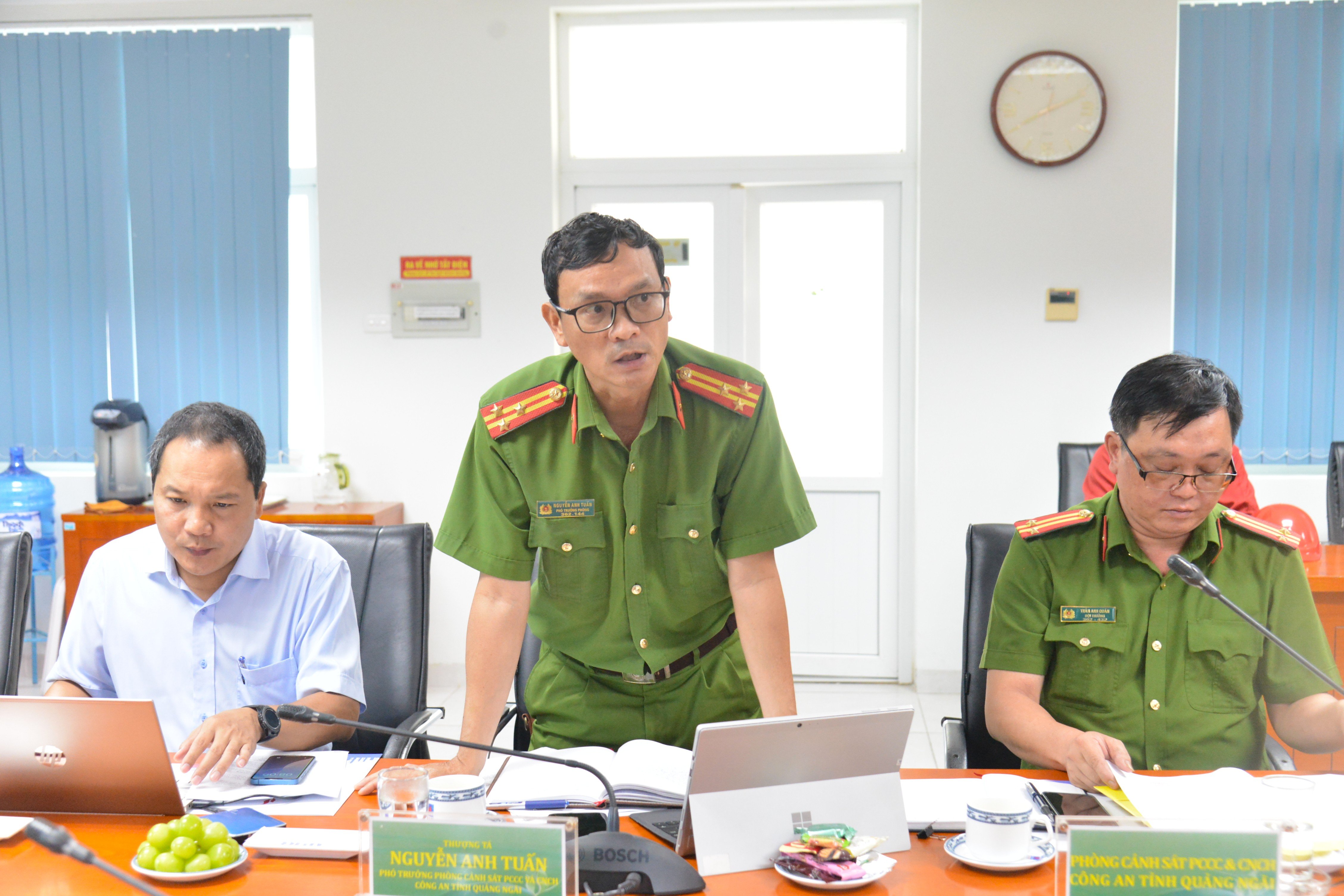 Lieutenant Colonel Nguyen Anh Tuan - Deputy Head of Department 07 (Fire Prevention and Rescue Police Department - Quang Ngai Provincial Police) spoke at the meeting