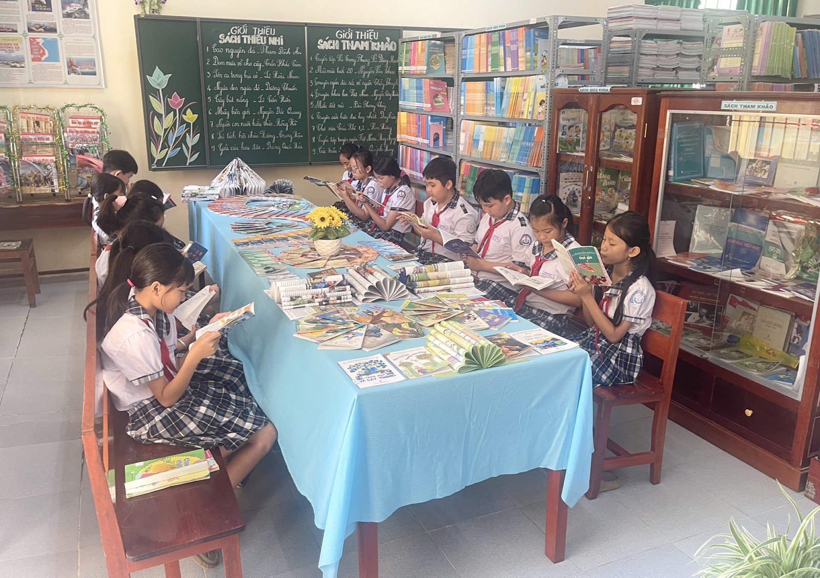 Students of Minh Luong 1 Primary School (Chau Thanh Commune) read books in the school library.