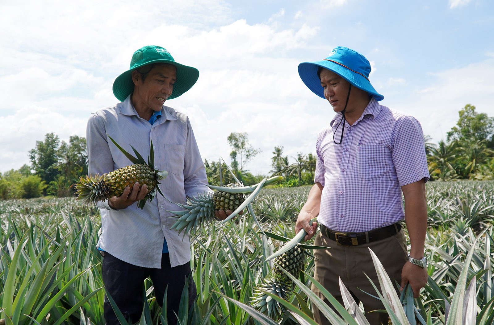Mr. Tran Van Hay (left) - Party Cell Secretary, Head of Ngoc Tan Hamlet, Ngoc Chuc Commune, is exemplary in mass mobilization work at the grassroots level.