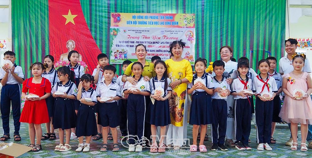 * On the afternoon of October 6, the Vietnam Buddhist Social Charity Board of Ca Mau province coordinated with Lac Long Quan Primary School (Tan Thanh ward) to organize the "Mid-Autumn Festival of Love" program for 659 students of the school.