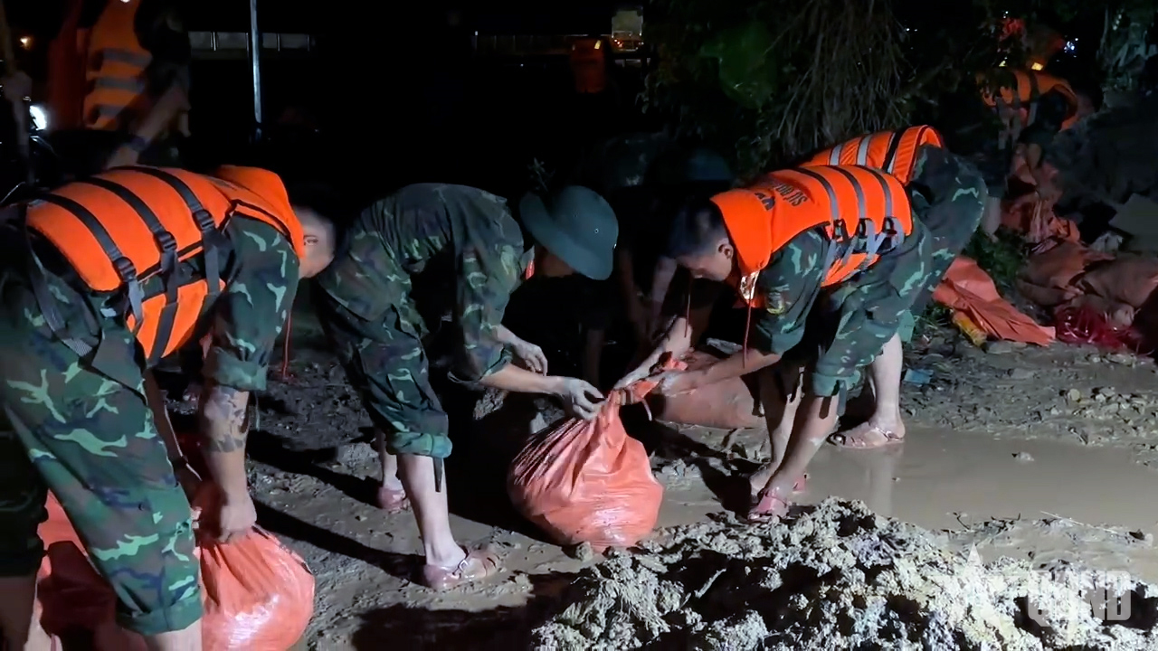 On the direction of the CHPT Committee of Area 2 - Ha Trung, the unit urgently lowered 2 motorboats to support the supply of food and provisions to isolated households in Binh Lam village, Ha Trung commune. "The unit's staff stayed up all night to protect the Hoat River dike with the officers and soldiers of Division 390. This morning, more than 30 officers and staff continued to participate in reinforcing the Buoi River dike at Cong Ba Nua, Kim Tan commune, where there is a risk of erosion, to ensure the safety of the dike system", said Colonel Le Van Dam, Commander of the CHPT Committee of Area 2 - Ha Trung.