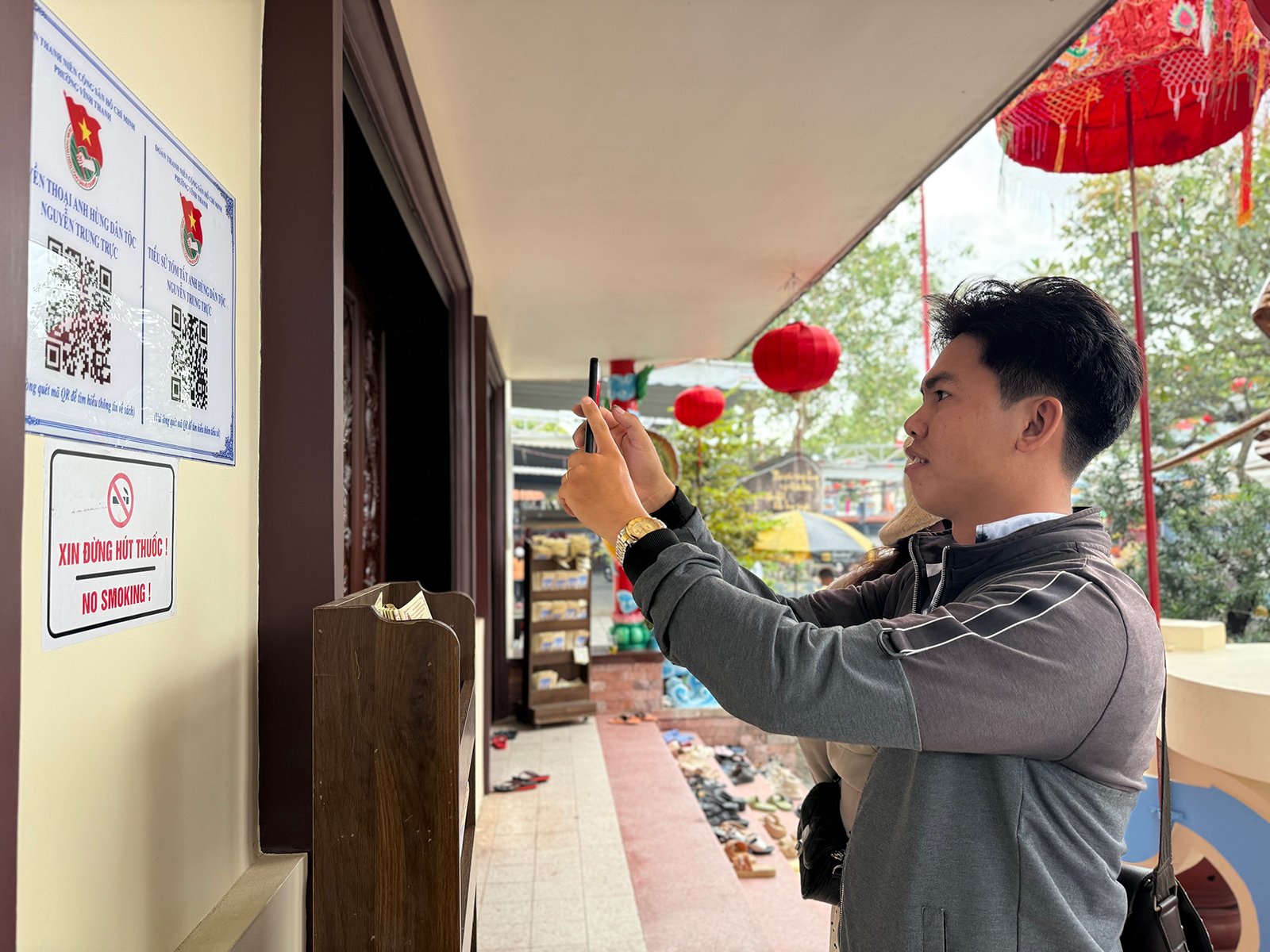 Every year, Nguyen Minh Nhi, a resident of Tan Thanh commune, visits Mr. Nguyen during the festival. Minh Nhi shared: “Just by scanning the QR code, I can read and listen to the full biography and career of Mr. Nguyen. I feel secure because the information is compiled from official sources, ensuring accuracy.”