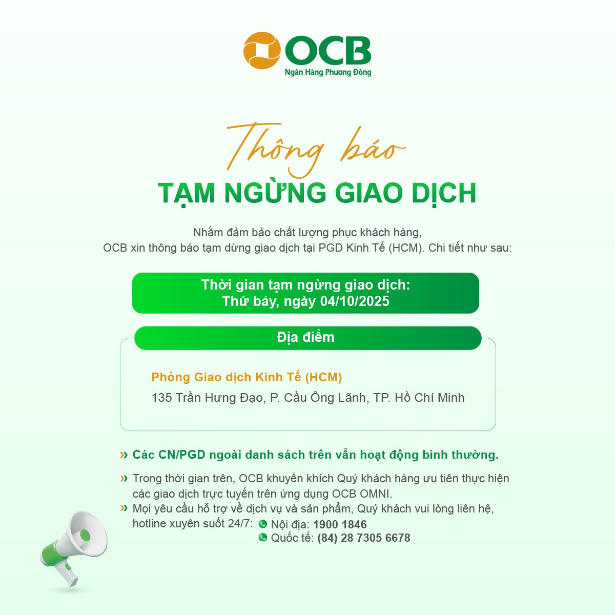 Notice of temporary suspension of transactions at Economic Transaction Office (Ho Chi Minh City)