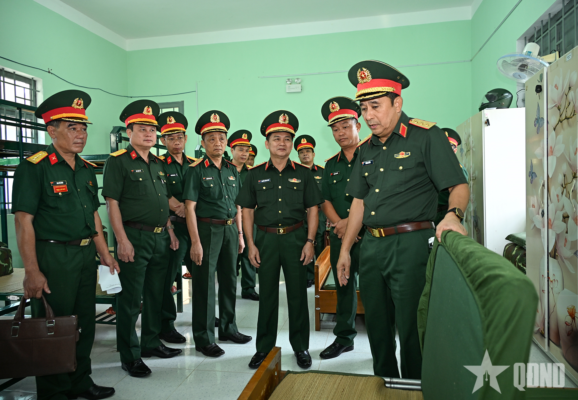 Senior Lieutenant General Phung Si Tan inspected the regular construction and internal arrangement of the Defense Command of Region 2 - Dak Po. |