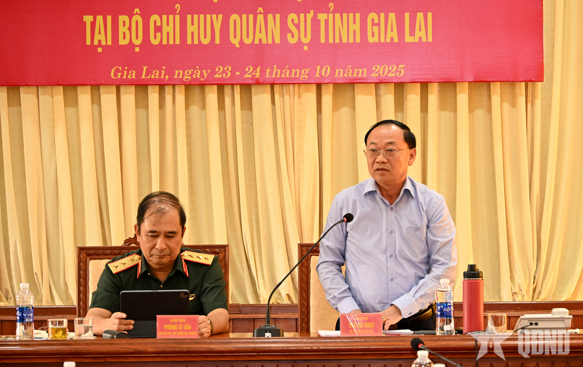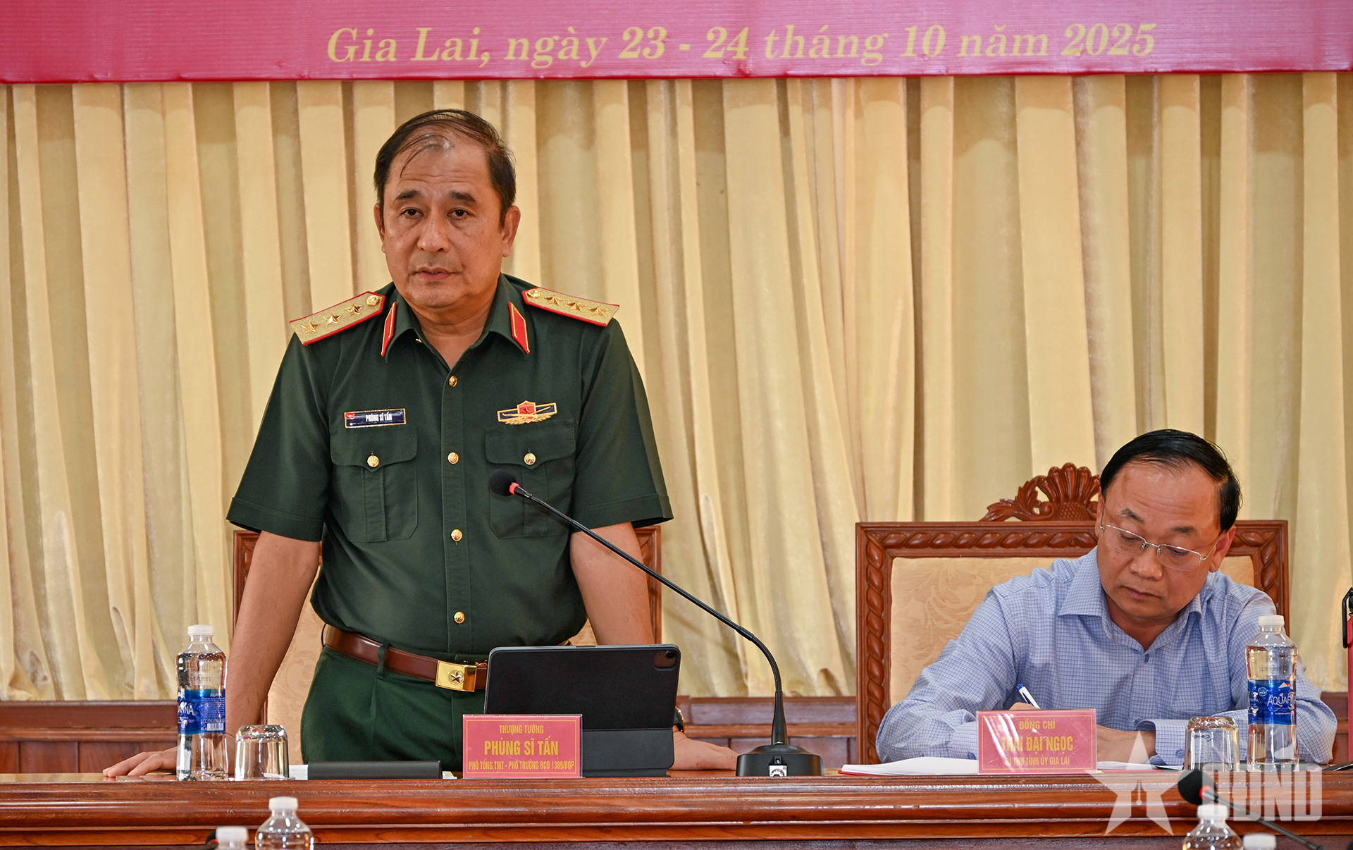 Senior Lieutenant General Phung Si Tan requested that in the coming time, the Gia Lai Provincial Military Command review the tasks, resolutions, orders, plans, and strive to complete the remaining tasks of 2025. Organize training and foster new contents in training, combat readiness, military recruitment, and promote digital transformation. Regularly coordinate to grasp and forecast the situation correctly, advise on timely handling of situations, and avoid being passive or surprised in any situation.
