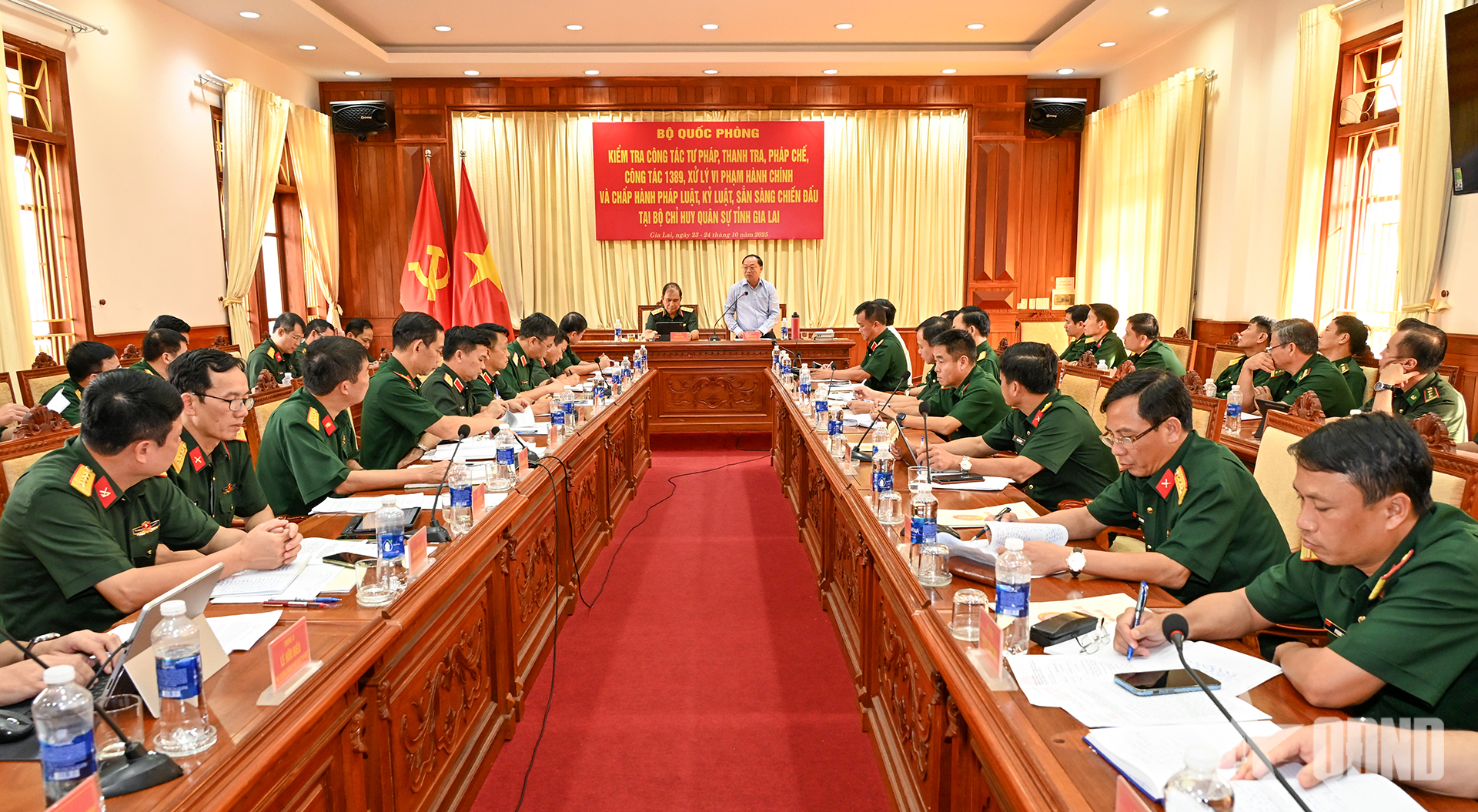 Inspection conclusion scene at Gia Lai Provincial Military Command. |