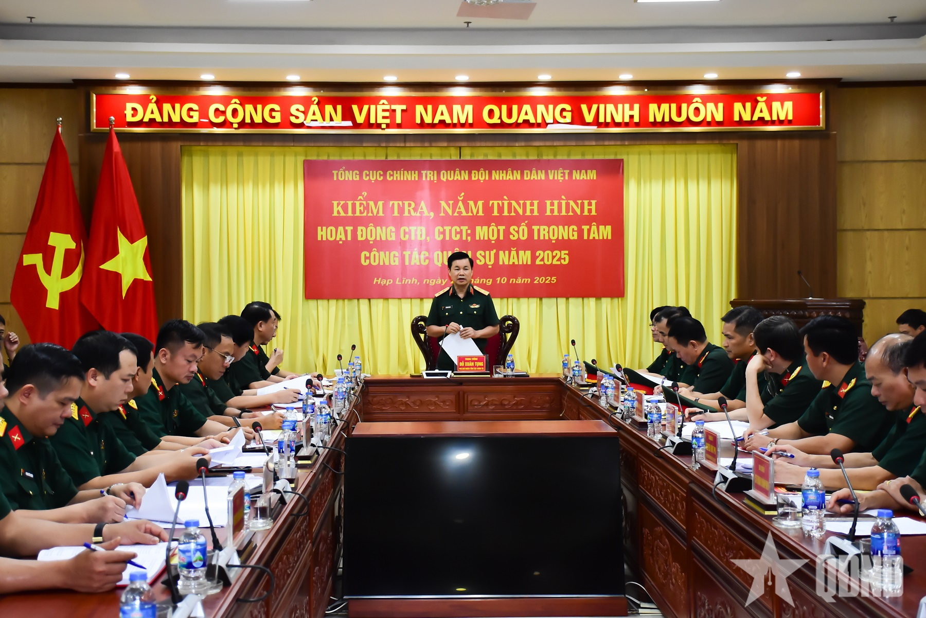 According to the plan, inspection team No. 1 was divided into two groups: Group 1 was directly chaired by Lieutenant General Do Xuan Tung, Deputy Director of the General Department of Politics, head of the group, and inspected the Defense Command of Area 4 - Hap Linh. Group 2 was led by Major General Nguyen Hong Phuong, Deputy Director of the Department of Personnel, deputy head of the group, and inspected the 833rd Regiment, Bac Ninh Provincial Military Command in the afternoon of the same day.