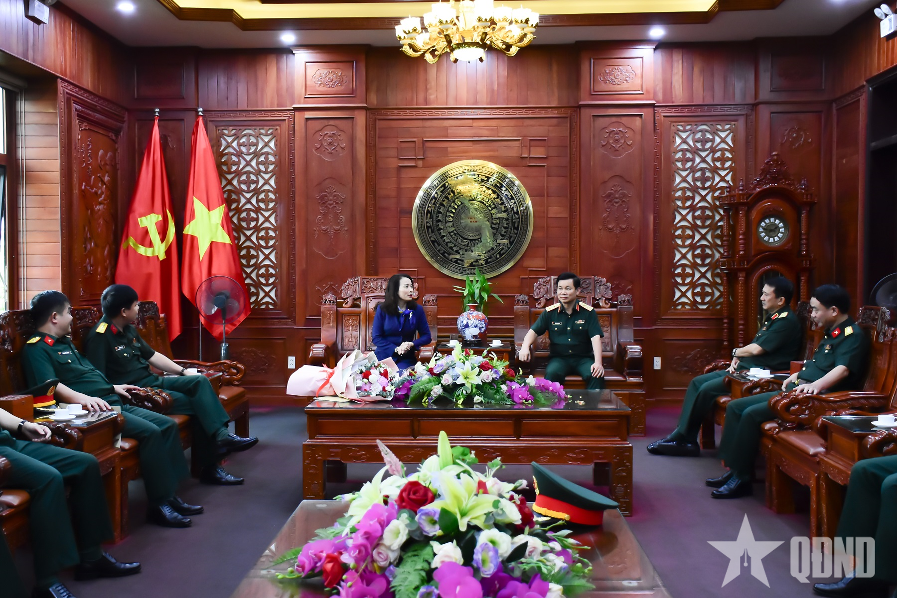 * Before working hours, Comrade Nguyen Thi Huong, Standing Deputy Secretary of the Bac Ninh Provincial Party Committee, received Lieutenant General Do Xuan Tung and members of inspection team No. 1. Comrade Nguyen Thi Huong expressed her pleasure to welcome the inspection team of the General Department of Politics to work in the locality, and at the same time gave an overview of the socio-economic development, national defense and security situation of the province in recent times.