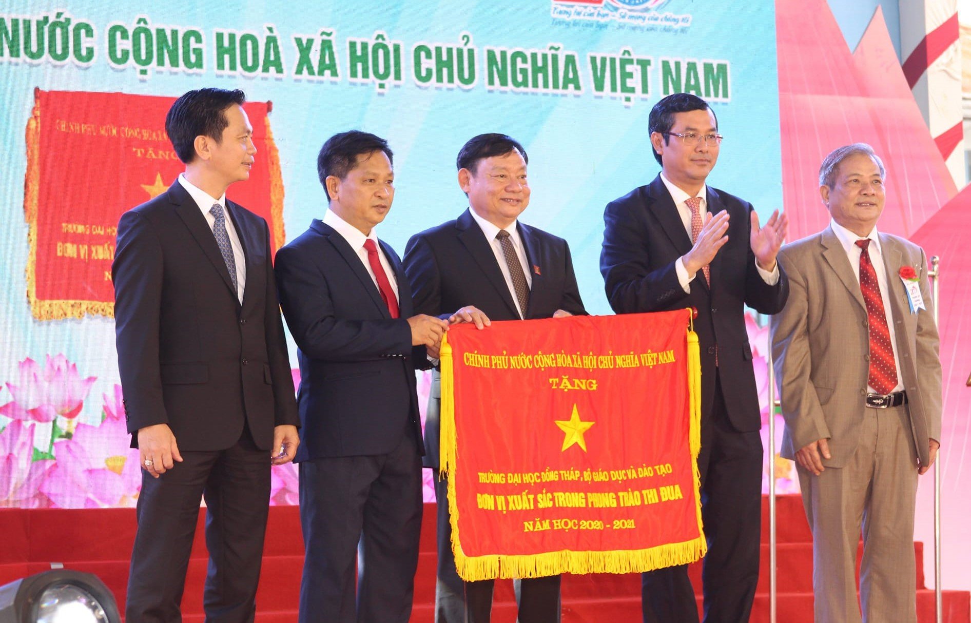 On this occasion, Dong Thap University was honored to receive the Prime Minister's emulation flag; receive the certificate of quality assessment of higher education institutions for the second cycle and the sixth training program of the school. The Communist Youth Union of Dong Thap University was also awarded a certificate of Vietnam record by the Vietnam Record Organization for the model "5,000 VND House", a model of mobilizing monthly contribution funds to build nearly 100 houses for students in difficult circumstances of the school.