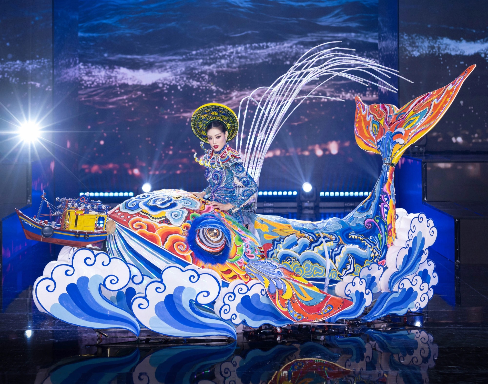 Hoa hậu Khánh Vân trình diễn thiết kế Nam Hải Ngọc Lân của nhà thiết kế Khoa Lỗ. (Ảnh: BTC