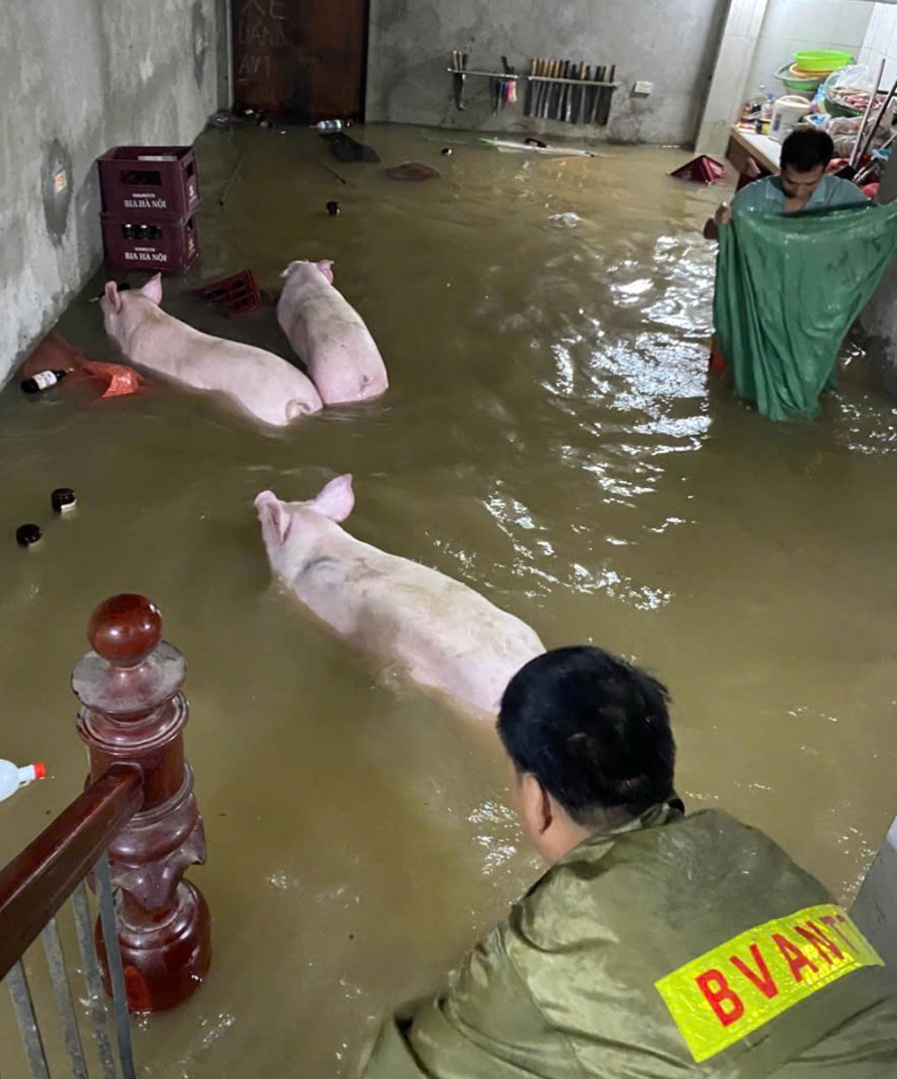 ティエンルック村のナム市場地区は低地に位置していたため、水位が急上昇し、多くの世帯の屋台が浸水しました。その夜、村の治安部隊は迅速に現場に到着し、商店の商品を安全な場所に移動させる支援を行い、その後も状況の収拾に努めました。