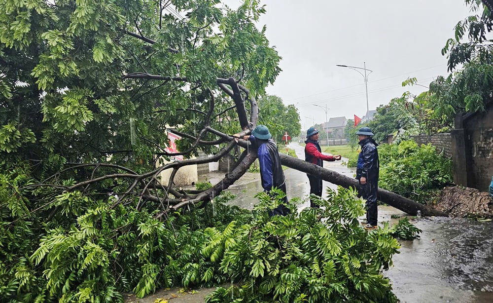 強風により木々が倒れた。ヒエップホア町当局は緊急に撤去作業を行い、交通安全を確保し、人的被害を最小限に抑えた。 |