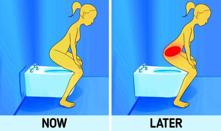 トイレに半分かがみ込む姿勢は、骨盤底筋が自然に使われないようにします。そのため、この姿勢でトイレに行くことを習慣にすると、骨盤底筋が弛緩しないように訓練され、長年かけて膀胱が弱くなる可能性があるとBright Sideは述べています。