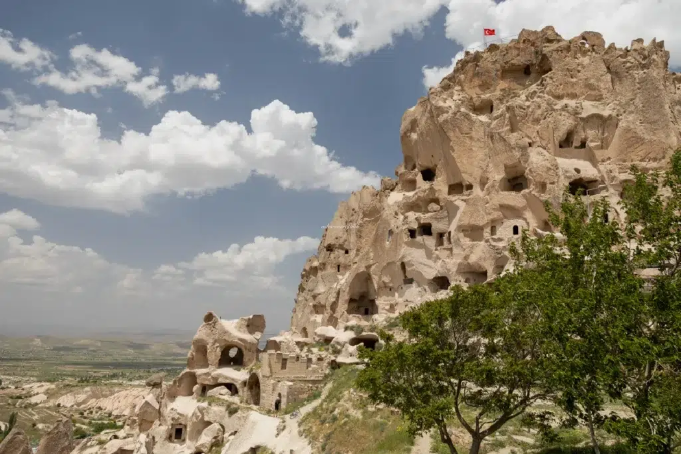 ウチヒサル村といえば、カッパドキアの長い歴史と深く結びついた土地です。高い丘の上にあるこの地は、かつて古代王朝の重要な防衛拠点でした。最も目を引くのはウチヒサル要塞です。ローマ時代に建造され、かつては地域全体を監視する監視塔として機能していました。