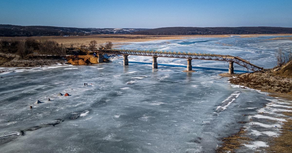 2023年2月、ウクライナのハリコフ州ボロヴァ村近くのオスキル川に架かる橋