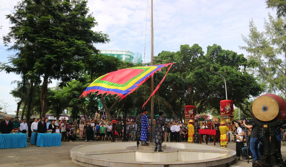 カンザー・ホエールフェスティバル2025の旗掲揚式が厳粛な雰囲気の中で行われた(写真:THANH TAM)