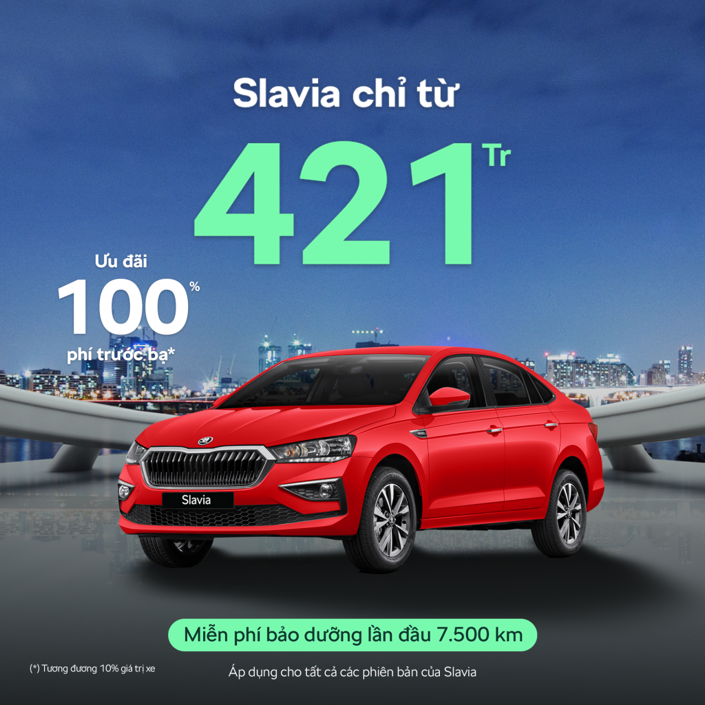 - シュコダ・スラヴィア– ラグジュアリーで洗練されたセダン。全3バージョンとも登録料100%相当の特別優遇措置で、その魅力を維持しています。価格はわずか4億2,100万VNDから。