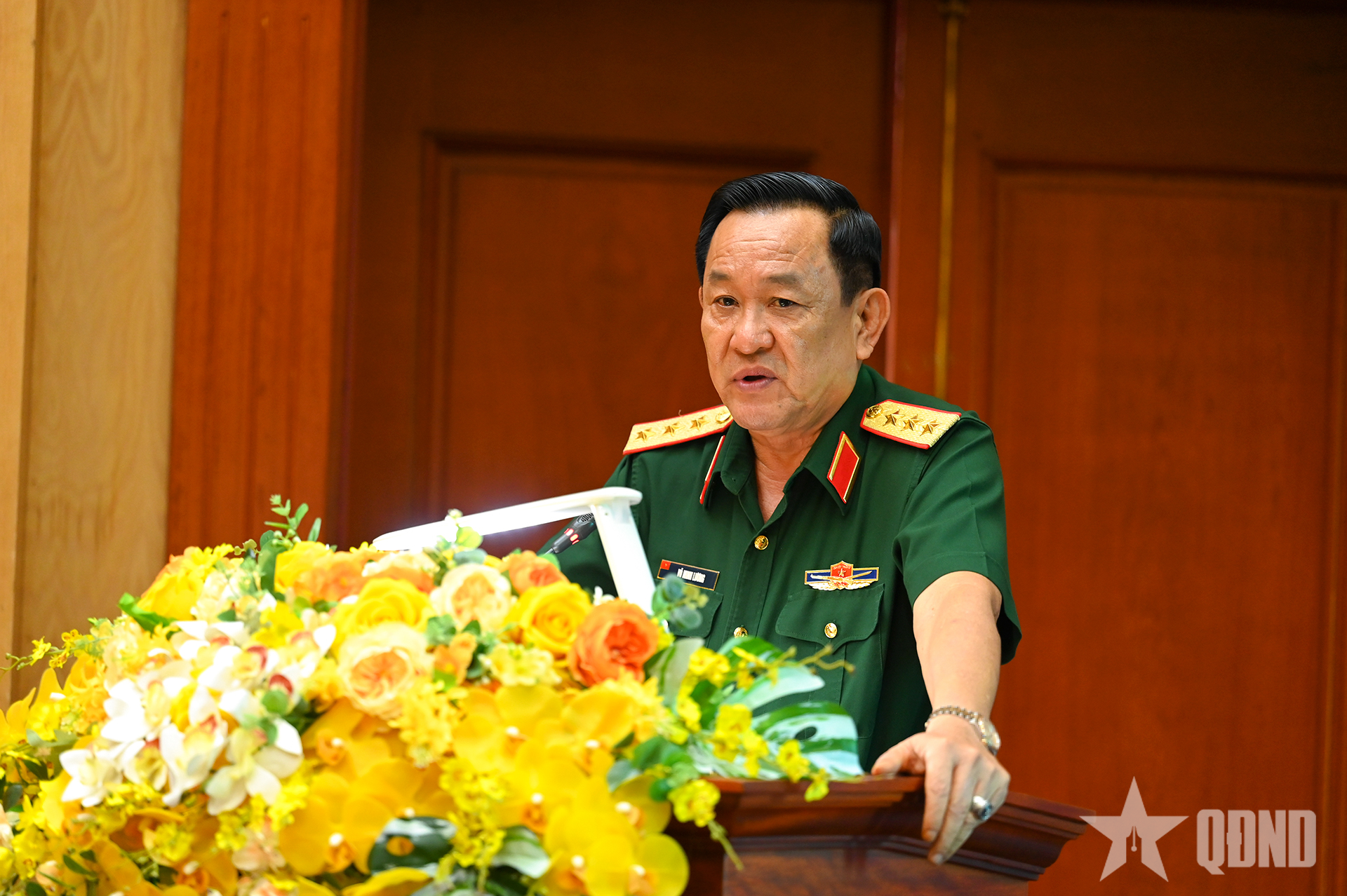 授賞式でスピーチをするヴォー・ミン・ルオン上級中将。写真:HIEU LE |