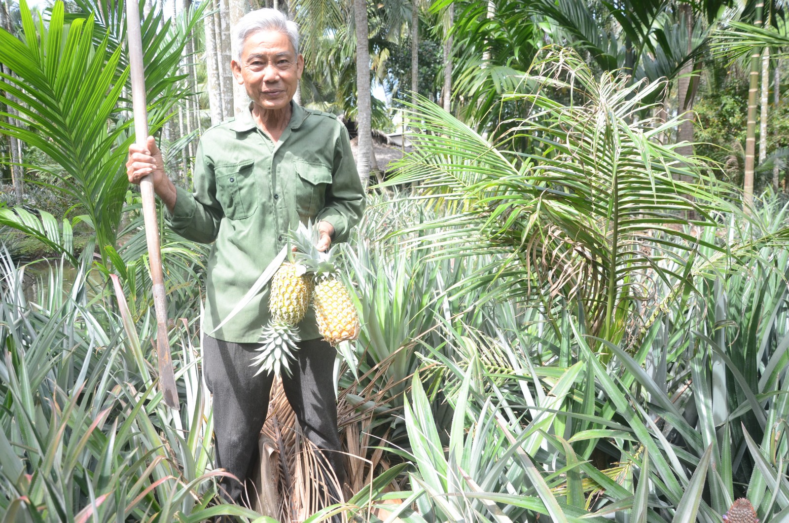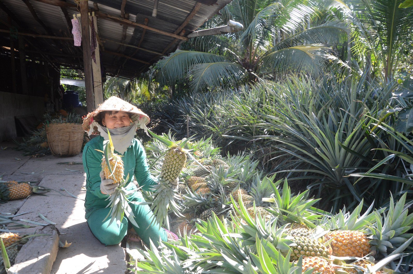 カイロン川とカイベー川の間に位置するビンアン村最大のパイナップル栽培地は、1,880ヘクタールに及びます。人々は庭に溝を掘り、高い畝を築いてパイナップルを栽培し、周囲の空き地を活用して、ビンロウジュやココナッツと混作しています。これら3種類の作物は、塩分に強い沖積土という土壌に適したものであり、人々の同一生産面積あたりの収入増加に貢献しています。